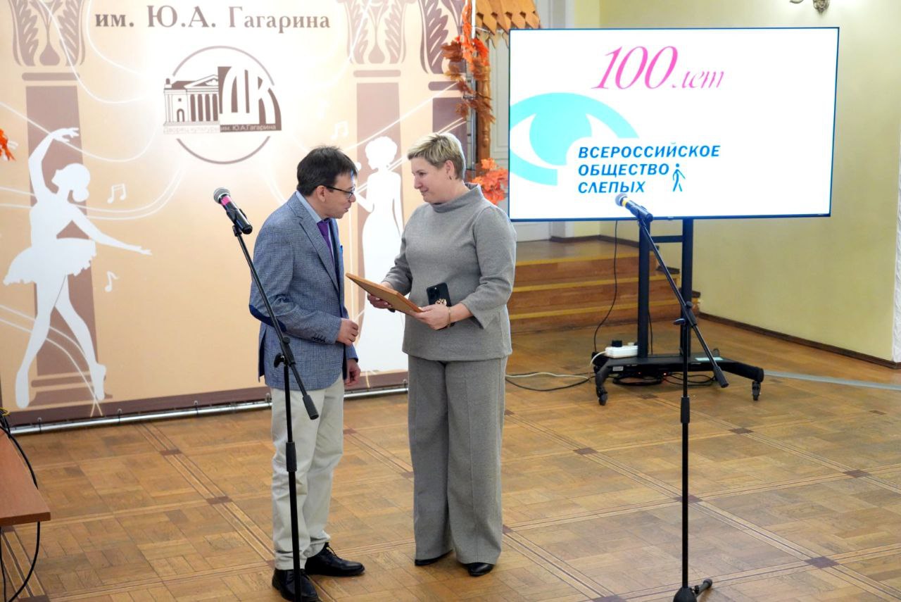 В этом году Всероссийское общество слепых празднует 100-летие. В нашем округе также уже более семидесяти лет работает своё местное отделение общества слепых. Численность организации на сегодня чуть более 150 человек. Сегодня зашла к ним на праздник в наш Дворец культуры имени Гагарина. Поздравила весь коллектив организации в лице его руководителя Михаила Николаевича Никанорова.