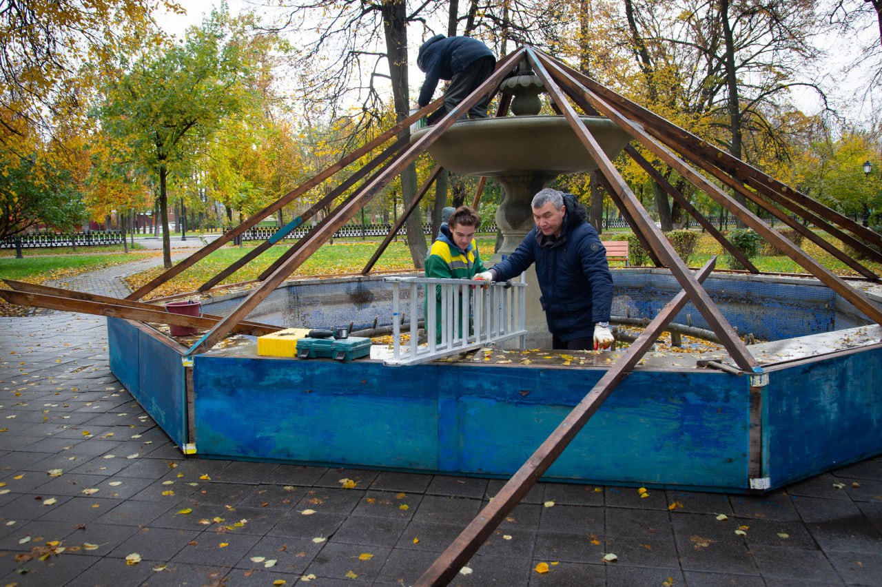 Городской фонтан, расположенный в Коломне в сквере имени В.А. Зайцева, перевели в зимний режим. С наступлением первых осенних холодов, начиная с октября месяца, работники МБУ «Спецавтохозяйство» начали проводить традиционные перед наступлением зимы мероприятия по уходу за городскими фонтанами: конструкции моют, демонтируют оборудование и проводят консервацию, чтобы к следующему сезону они снова были готовы радовать жителей.