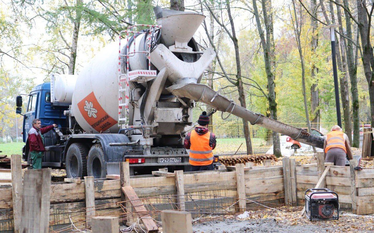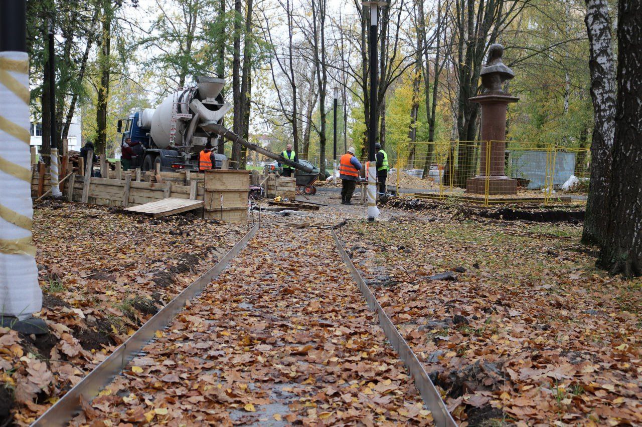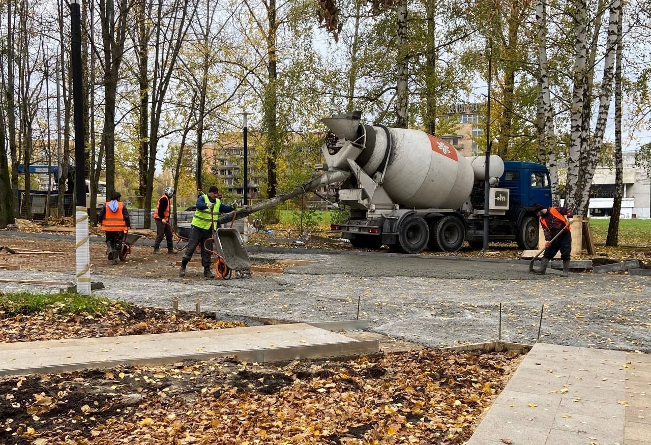 На сегодняшний день на объекте установлен бордюрный камень, подрядчик приступает к укладке тротуарной плитки. В процессе также - основание центральной площадки, бетонирование подпорных стенок, начинается мощение пешеходных дорожек. Ожидается поставка малых архитектурных форм.