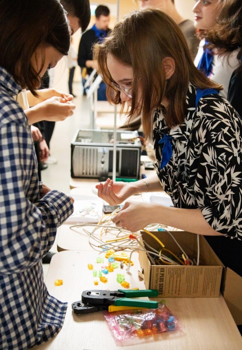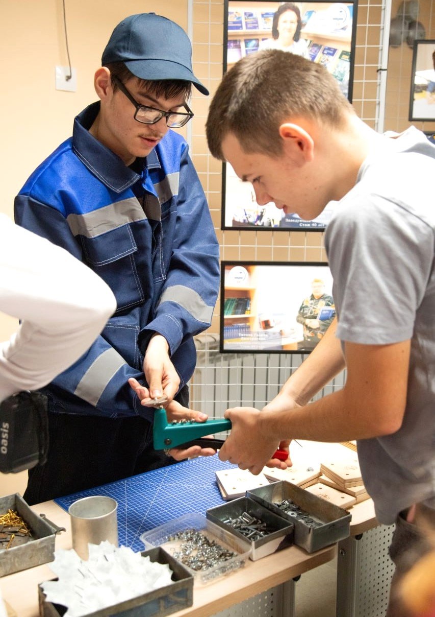 Мастера слесарных работ учили разным видам крепежа, электротехники демонстрировали современную систему освещения, сетевые администраторы погружали в мир цифровых технологий, будущие пожарные показывали навыки спасения. Мастера-растениеводы, представители индустрии красоты, повара-кондитеры, автослесари знакомили будущих студентов со своими направлениями.