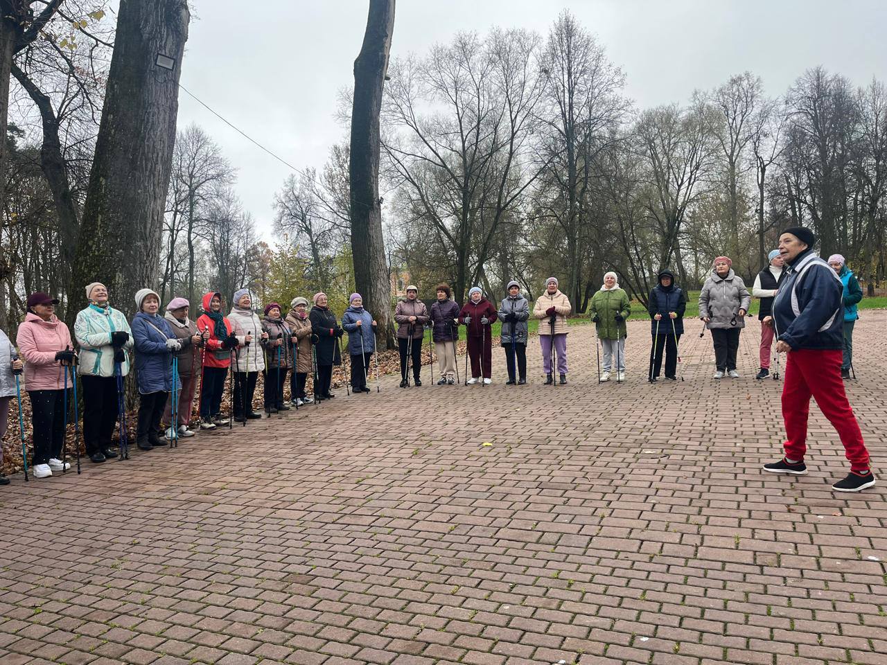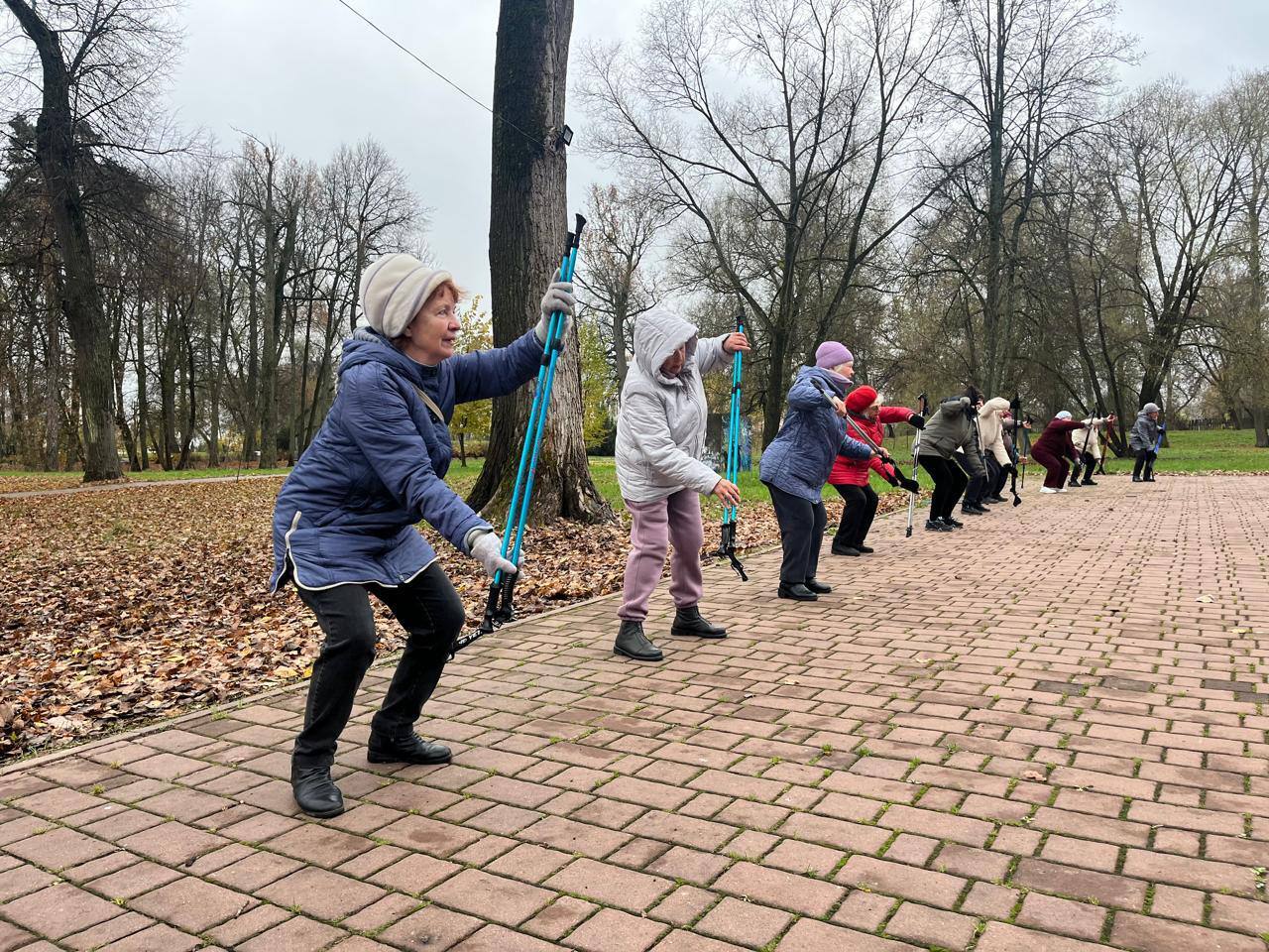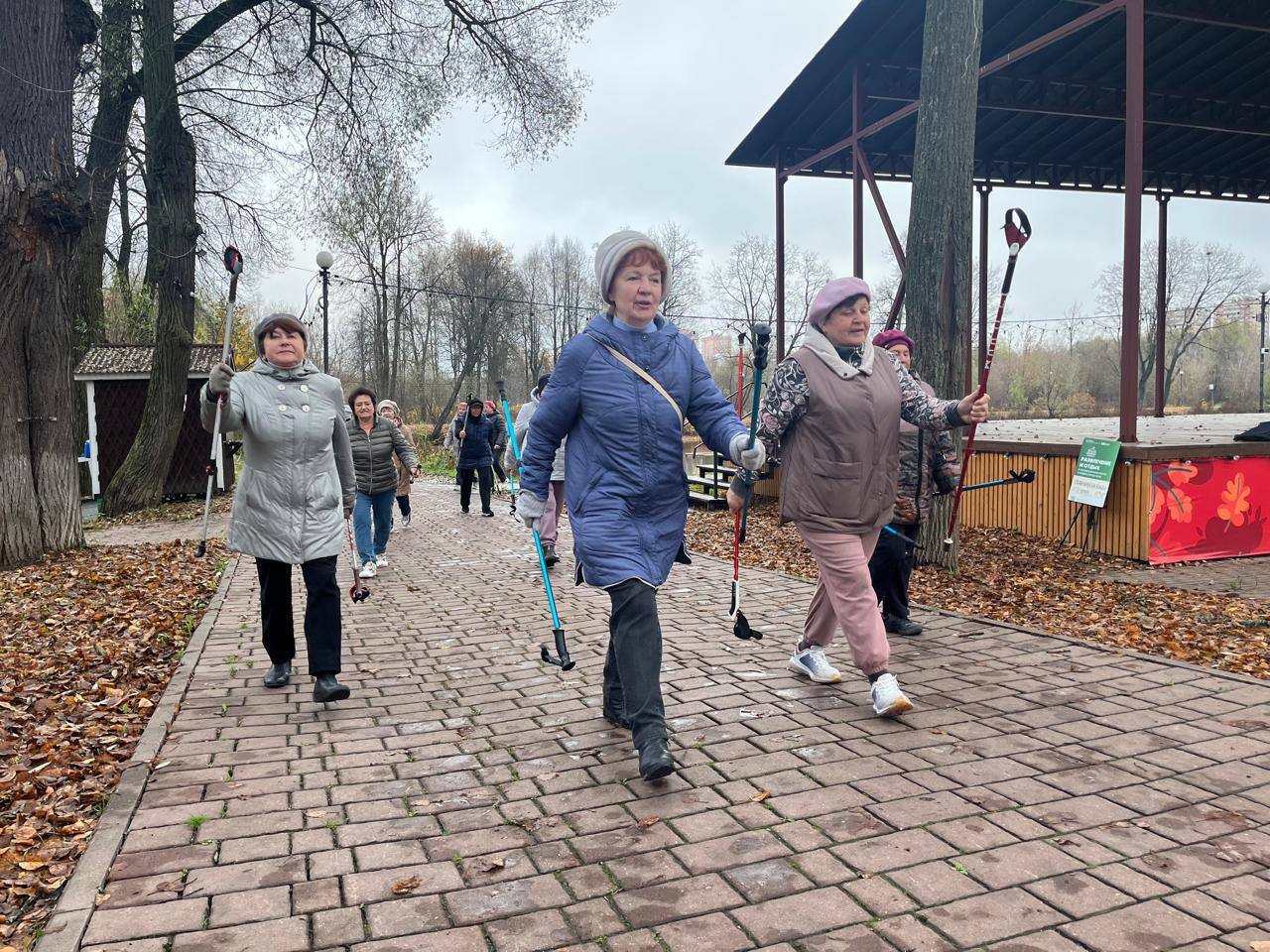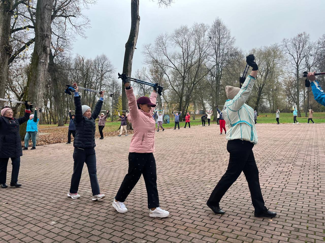 Понедельник, в Городском парке, начался с разминки и зарядки от "Активного долголетия". Скандинавская ходьба - это способ поддерживать здоровье Кстати при занятиях задействуются до 90% мышц тела!