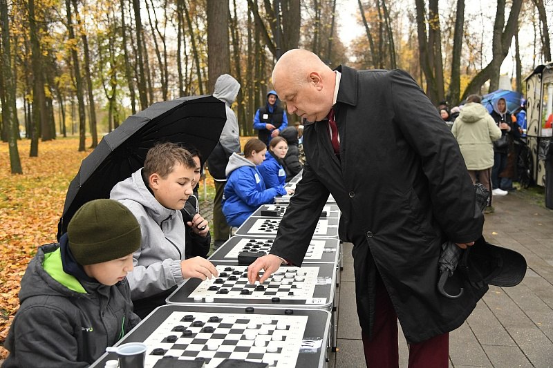 Главным событием насыщенного и уникального спортивного события стал увлекательный сеанс одновременной игры по русским шашкам с легендарными гроссмейстерами и чемпионами Николаем Макаровым и Владиславом Мироновым, а также с вице-президентом Федерации шашек Игорем Демченко.