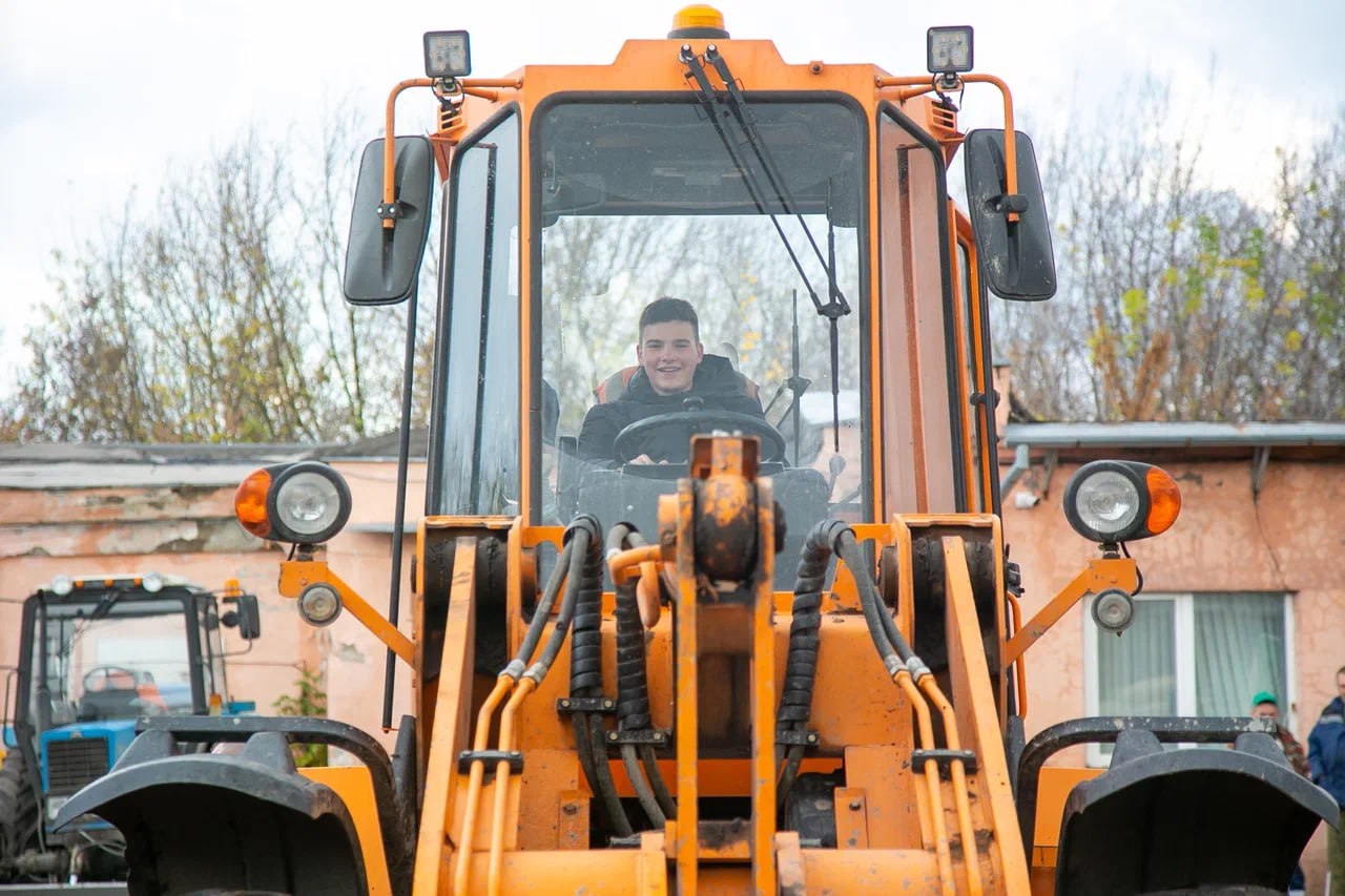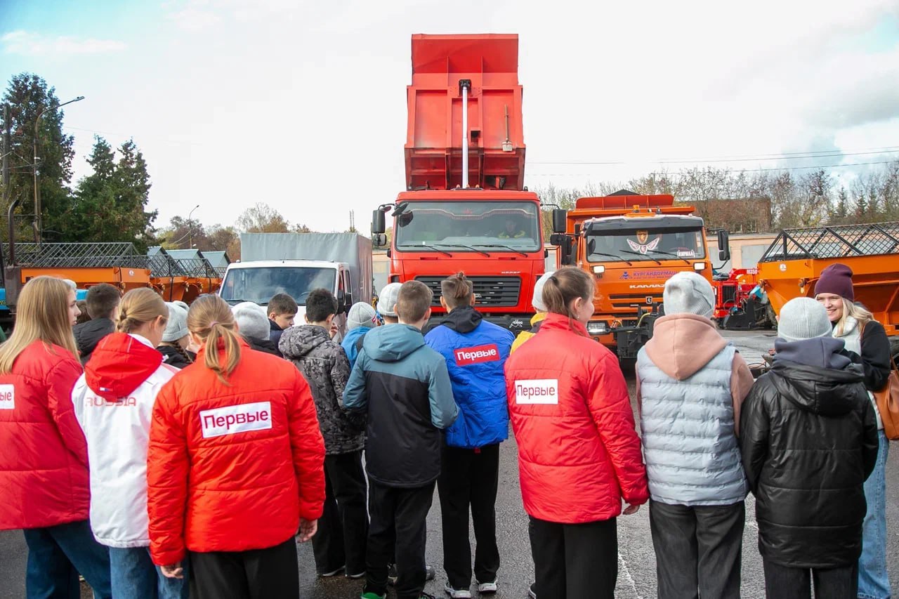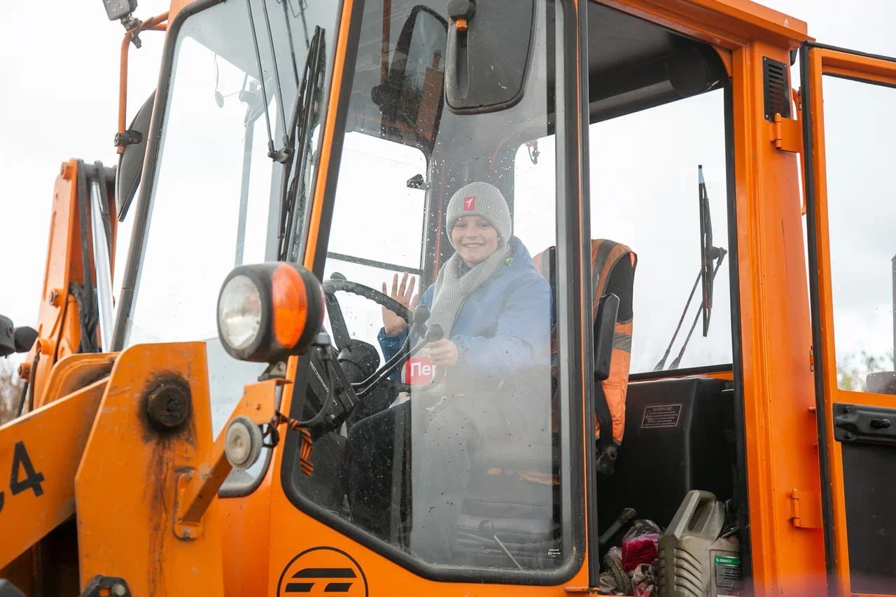 Ребята осмотрели парк уборочной техники, узнали, как городские службы готовятся к зимнему сезону и даже смогли ощутить себя в роли водителей погрузчиков, тракторов и грейдеров, посидев в кабинах специализированных автомобилей.