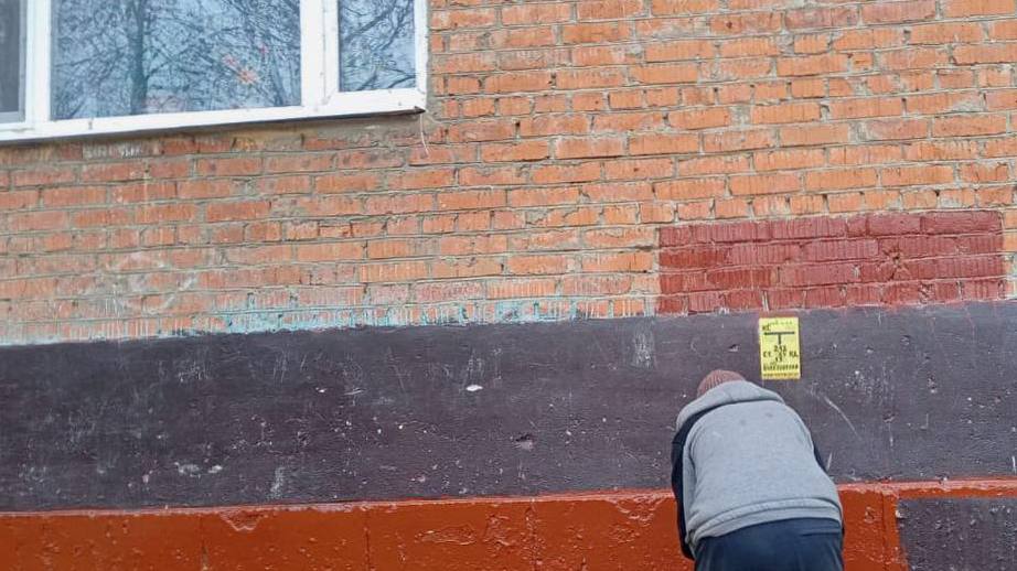 МБУ "Чеховское Благоустройство" проводит работы по покраске цоколя