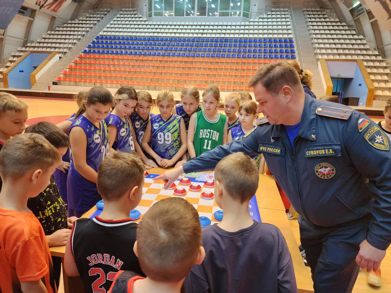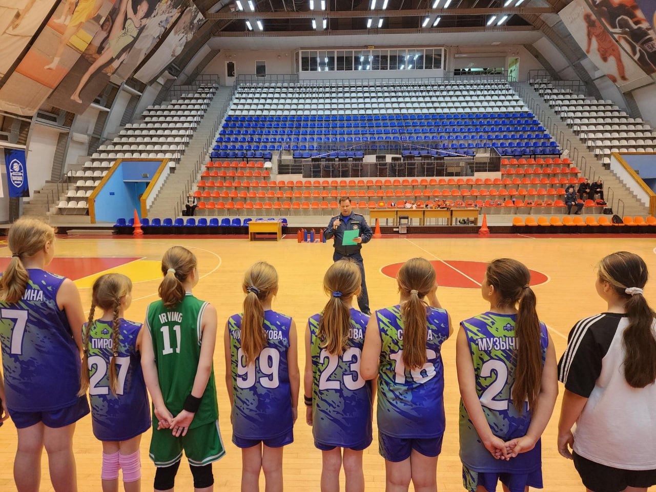 Ярким финалом встречи стал праздничный флешмоб. Юные баскетболисты выстроились в центральном круге площадки в символичную цифру «35», чтобы таким образом поздравить сотрудников МЧС с юбилеем.