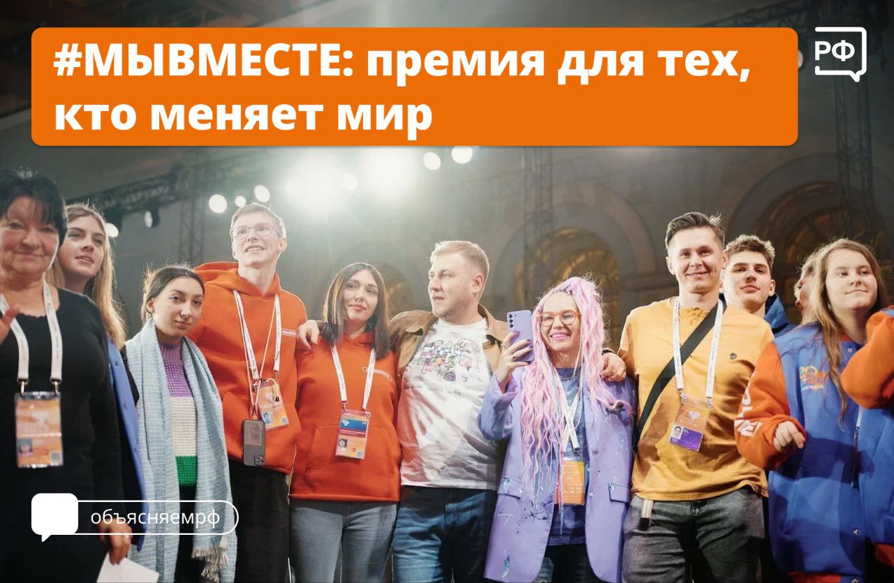 За 5 лет Премия #МЫВМЕСТЕ переросла в масштабное мировое волонтёрское сообщество, которое объединяет людей, неравнодушных к чужой беде и готовых всегда прийти на помощь. Это настоящие лидеры социальных изменений, которые работают в самых разных сферах: от поддержки участников СВО, помощи детям и пожилым людям до сохранения культурного наследия и создания экологических инициатив,