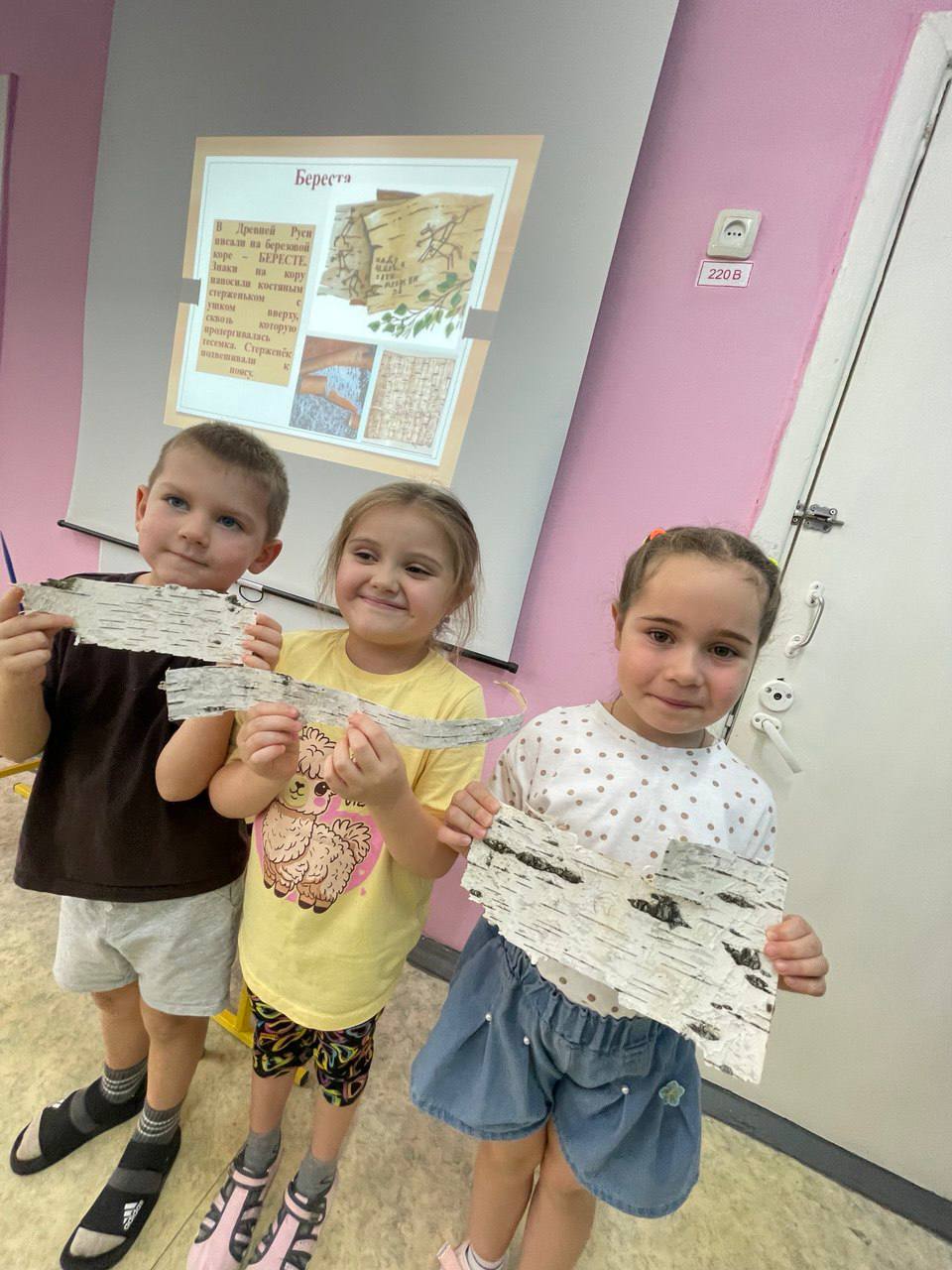 Дети попробовали себя в роли древних писарей: они рисовали и писали на камне, коже, глине и бересте.