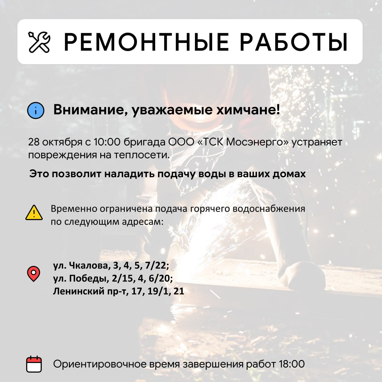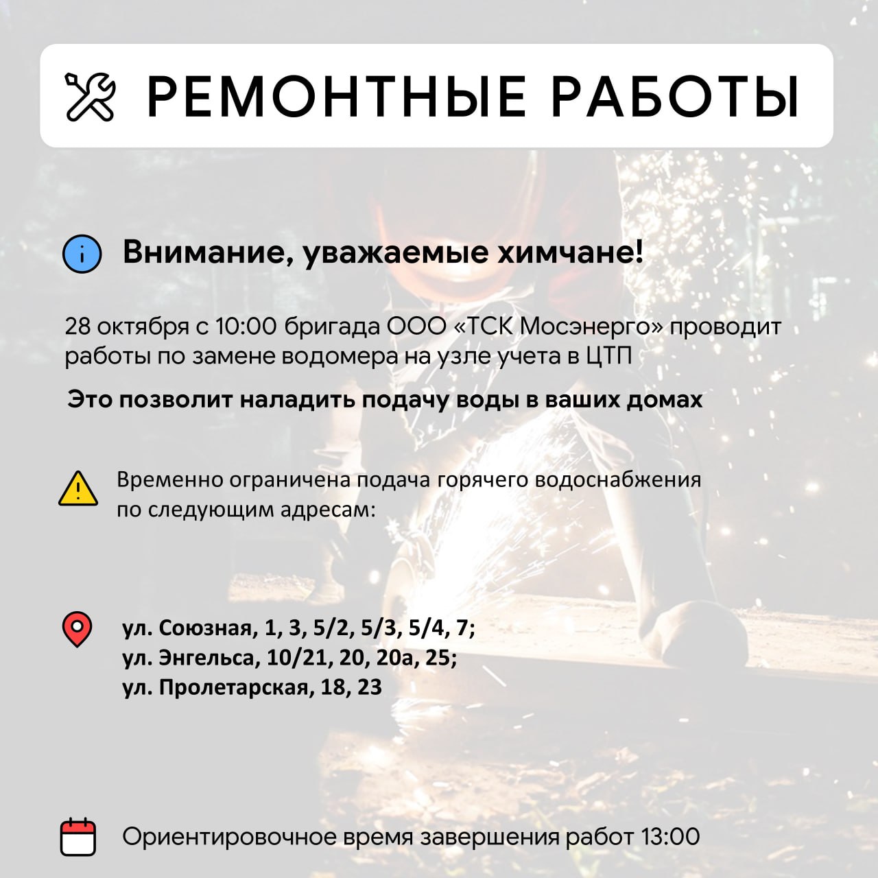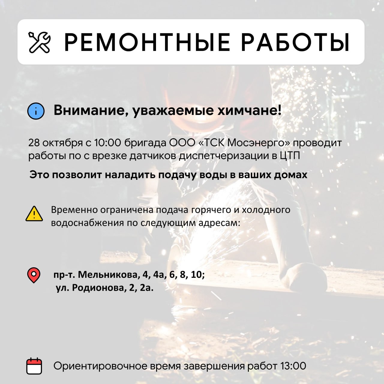 Администрация информирует28.10.2025г.ул. Фрунзе, д.1 к.1, д.Зк.1ул. Дзержинскогоул. Калинина1-й, 2-й Мытищинский переулок1-й, Калининский переулокВ период с 10:00 до окончания работ, будет произведено отключение электроснабжения, в связи с проведением...