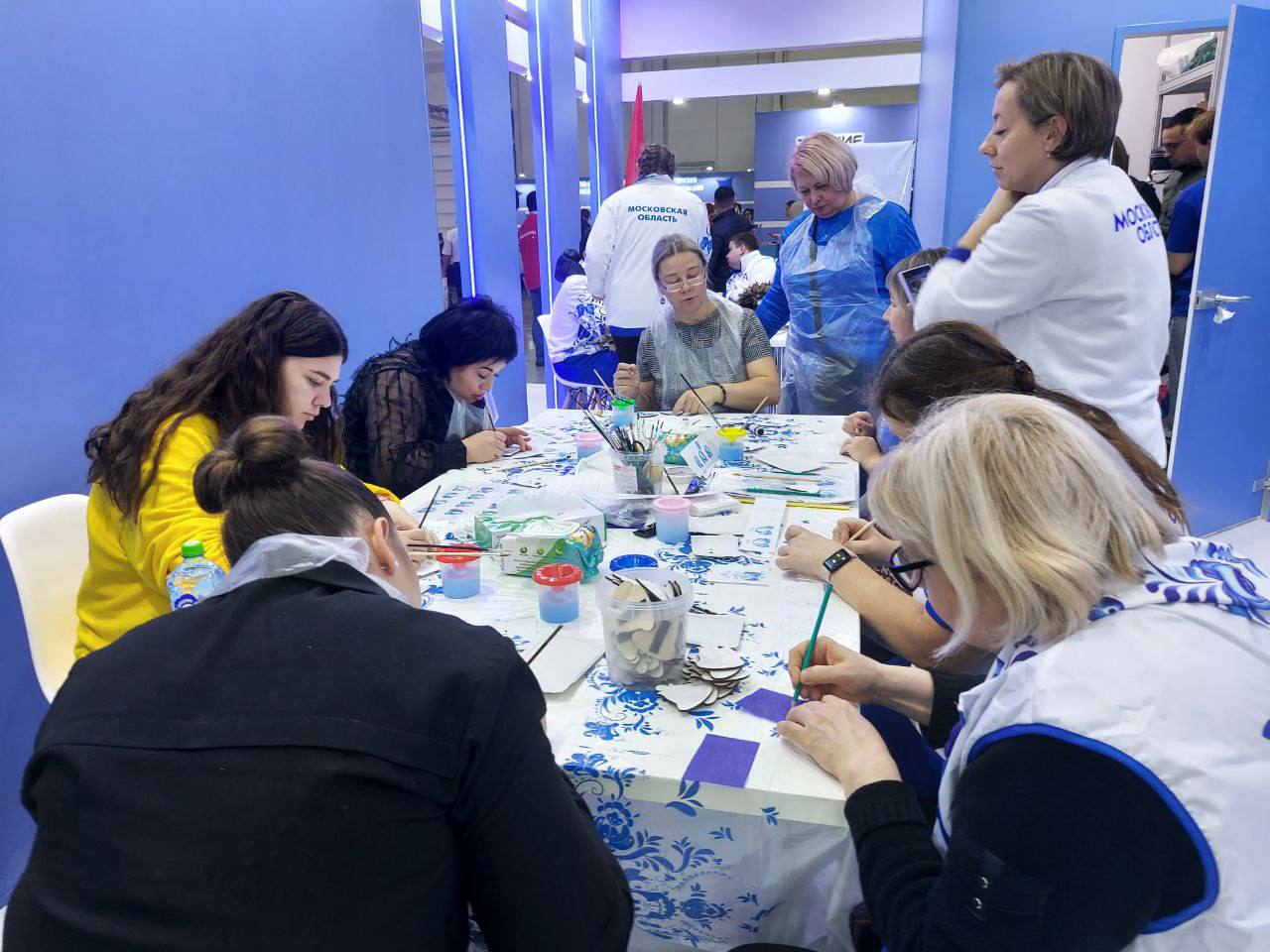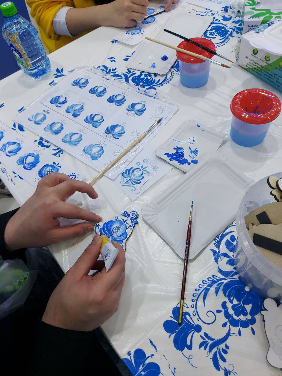 Педагоги Образовательного центра «Созвездие» Алексашина Наталья Владимировна и Крошкина Наталья Юрьевна провели мастер-класс «Гжельская роспись» на стенде Московской области.