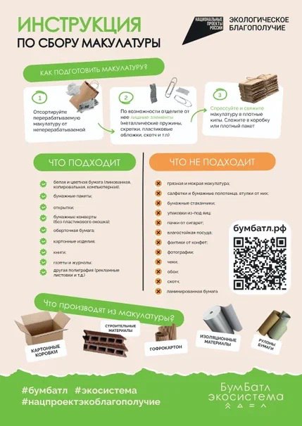 До конца ноября в России проходит осенний этап масштабной экологической акции «БумБатл» в рамках национального проекта «Экологическое благополучие». Инициатором мероприятия по сбору макулатуры является движение «Экосистема» при поддержке Минприроды России.