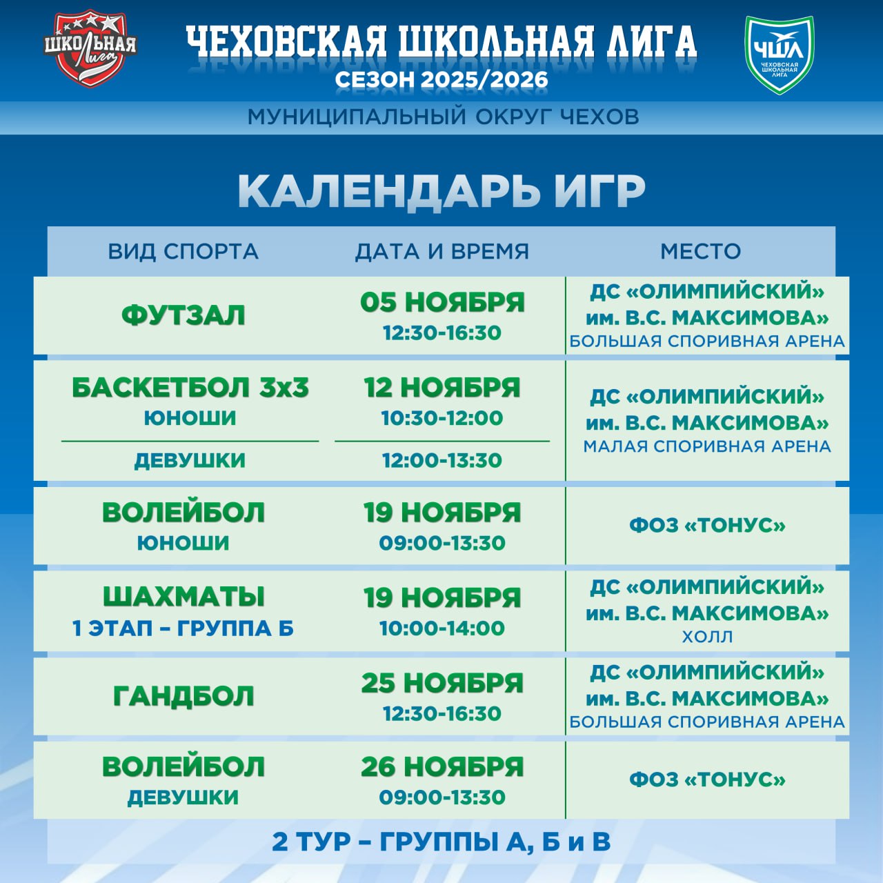 Совсем скоро стартует второй тур Чеховской Школьной Лиги, делимся датами наших новых встреч!