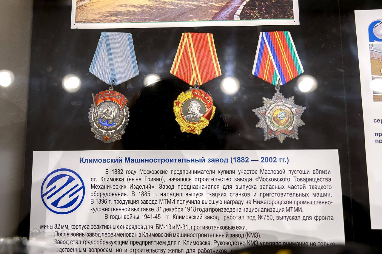 Впервые за долгое время музей показал редкие экспонаты Климовского машиностроительного завода, включая макеты ткацких станков и ордена, которыми был награждён завод. Значительная часть экспозиции посвящена вкладу КМЗ в годы Великой Отечественной войны - производству мин и корпусов реактивных снарядов для «Катюш».