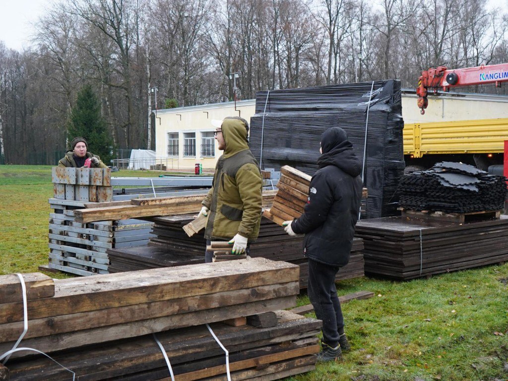 В ступинском парке Островского идет активная подготовка к предстоящему зимнему сезону. На территорию парка доставили комплектующие, необходимые для сборки катка. Специалисты подрядной организации приступили к монтажу конструкций на поле за аттракционами.
