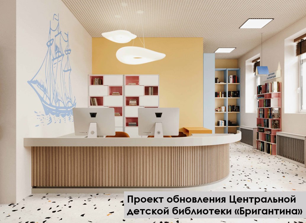 После обновления здесь будет новое современное пространство с концепцией, привязанной к историческому названию библиотеки – «Бригантина». Важно, что идею и цветовое решение согласовали с постоянными читателями.