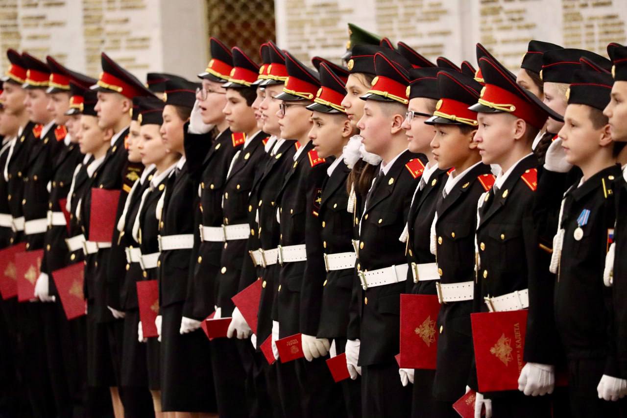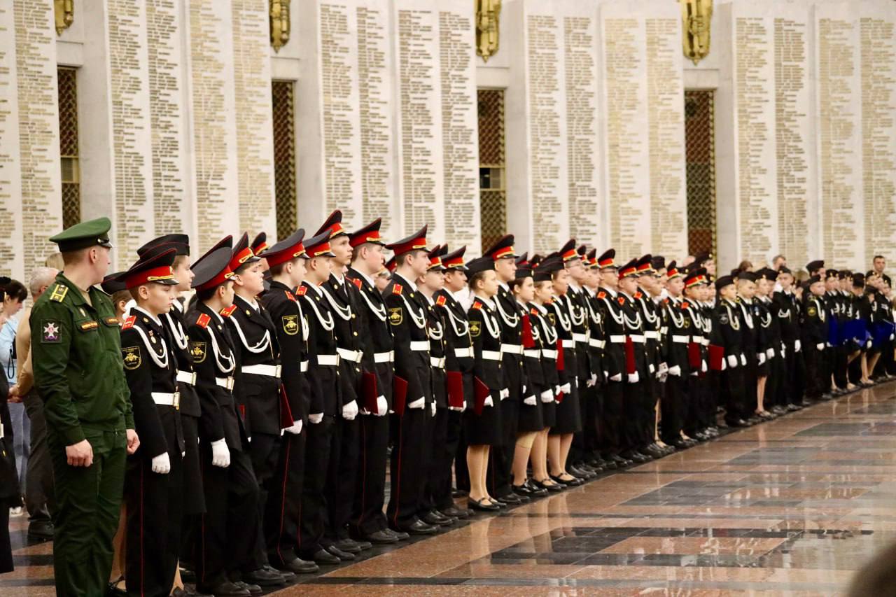 В Музее Победы на Поклонной горе прошло торжественное посвящение в кадеты будущих защитников Отечества. В Зале Славы собрались офицеры и курсанты Военно-инженерной академии, чтобы стать свидетелями важного события — «Клятвы кадета».