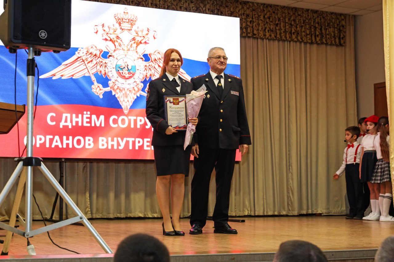 Самый трогательный подарок получили стражи порядка от образцового коллектива «Вокальный ансамбль «Камертон» Дворца культуры «Сатурн». Песни в исполнении юных артистов никого не оставили равнодушным. Под стать им были выступления и других приглашенных исполнителей: ветерана органов внутренних дел Александра Дымова и солистки военно-духового оркестра Академии ФСБ России, заслуженной артистки РФ Анастасии Артемовой.