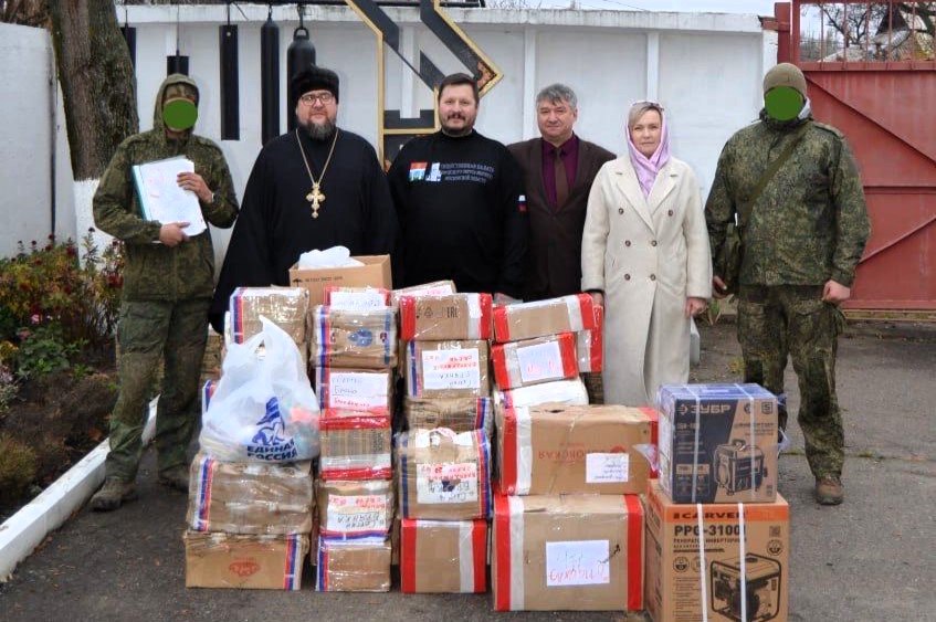 При посещении Свято-Николаевского храма передали помощь для военнослужащих одного из подразделений ВС РФ, собранную благочинием и администрацией муниципального образования г. Брянка, а также представителями администрации г.о. Мытищи и волонтерами АНО «Круги добра», через бойца, нашего земляка, прибывшего на встречу.