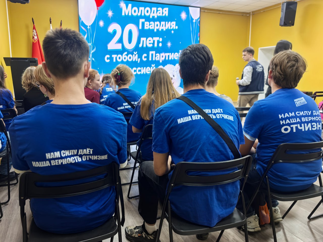 «Молодой Гвардии» исполняется 20 лет. Торжественные мероприятия прошли в стенах досугового центра «Про молодежь» в г. Ногинск. В этот день в фойе работали интерактивные зоны и тематические площадки. Также для гостей была организована выставка «Молодая Гвардия. 20 лет. С тобой. С Партией. С Россией».