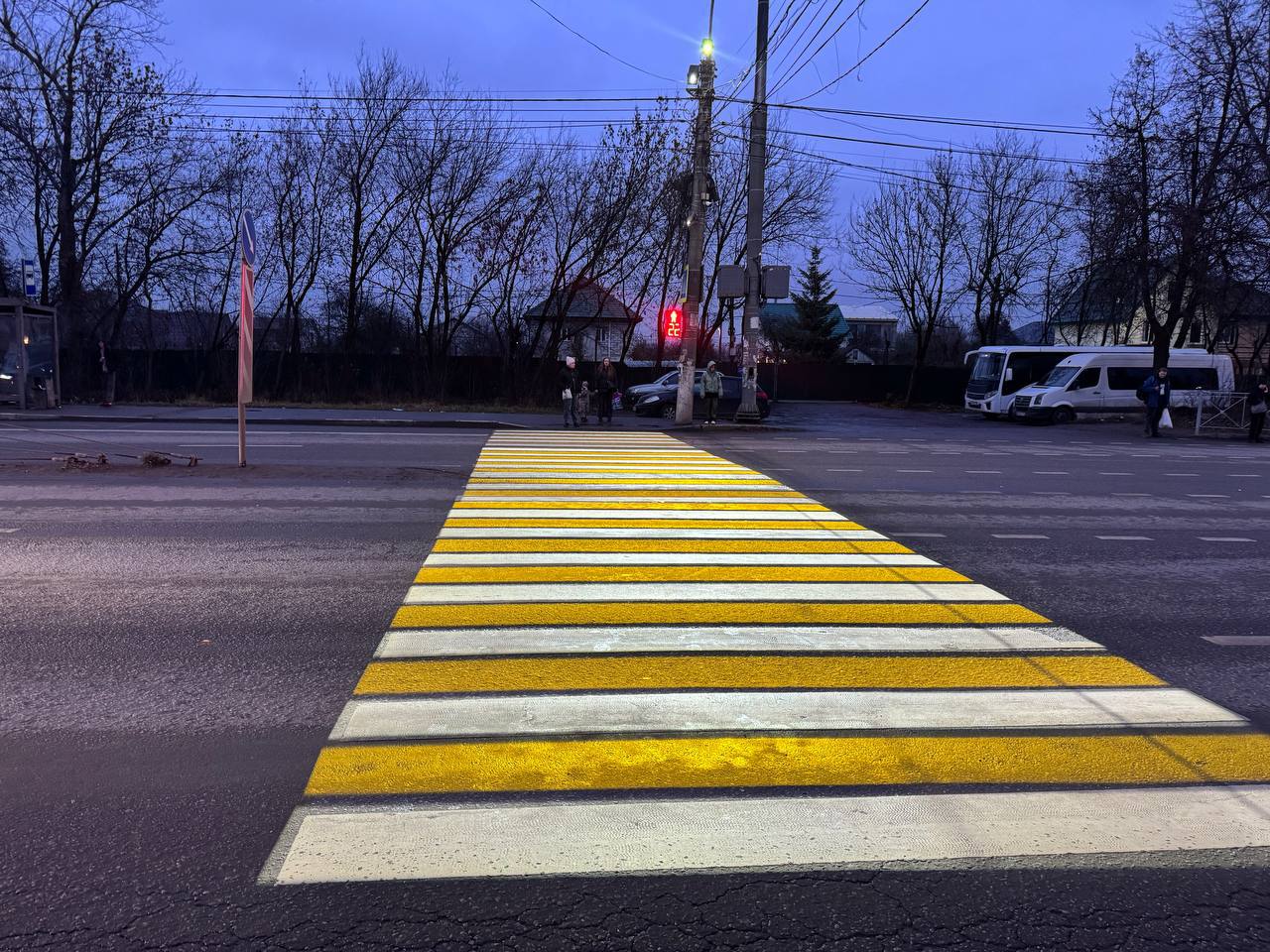В Подольске повышают безопасность: инновационная проекционная разметка появилась у остановки «Красная горка»