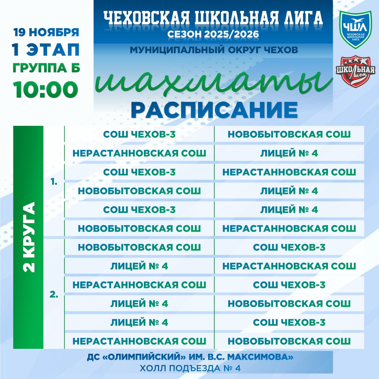 @schoolligarf #ЧеховскаяШкольнаяЛига #ЧШЛ #шахматы #расписание