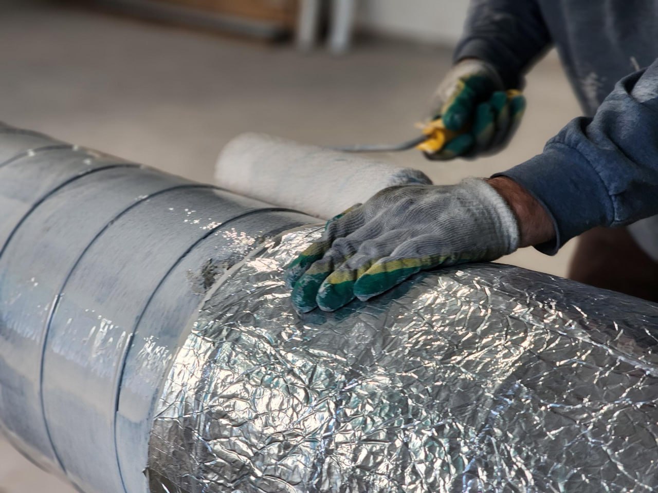 Завершают монтаж вентиляции, электрических сетей и слаботочных систем. Монтируют натяжные потолки со светильниками и противопожарными датчиками.