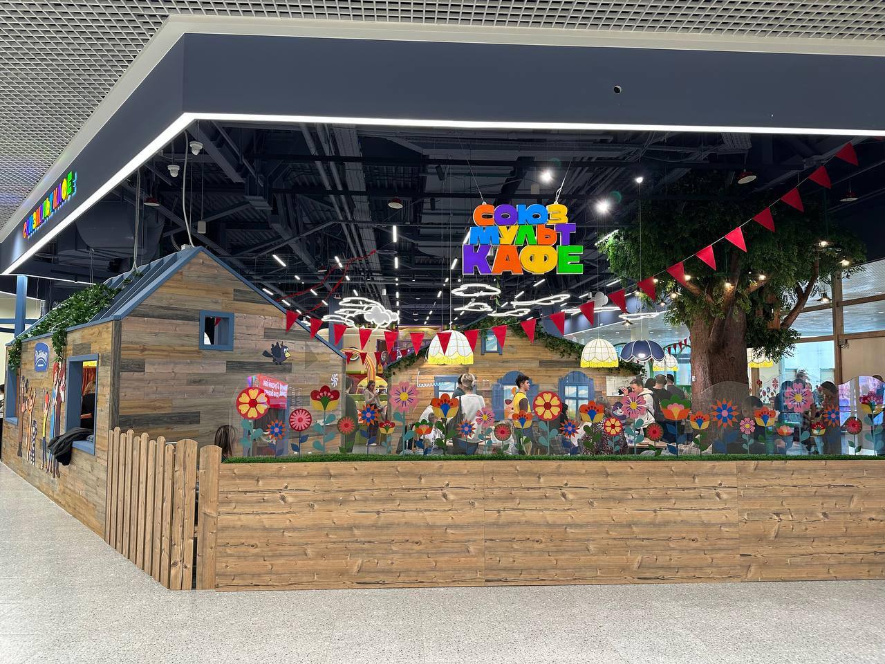 Новое семейное пространство разместилось в терминале №2 на втором этаже, рядом с часовней. Пространство площадью около 700 кв. м оформлено в стиле любимых персонажей студии.