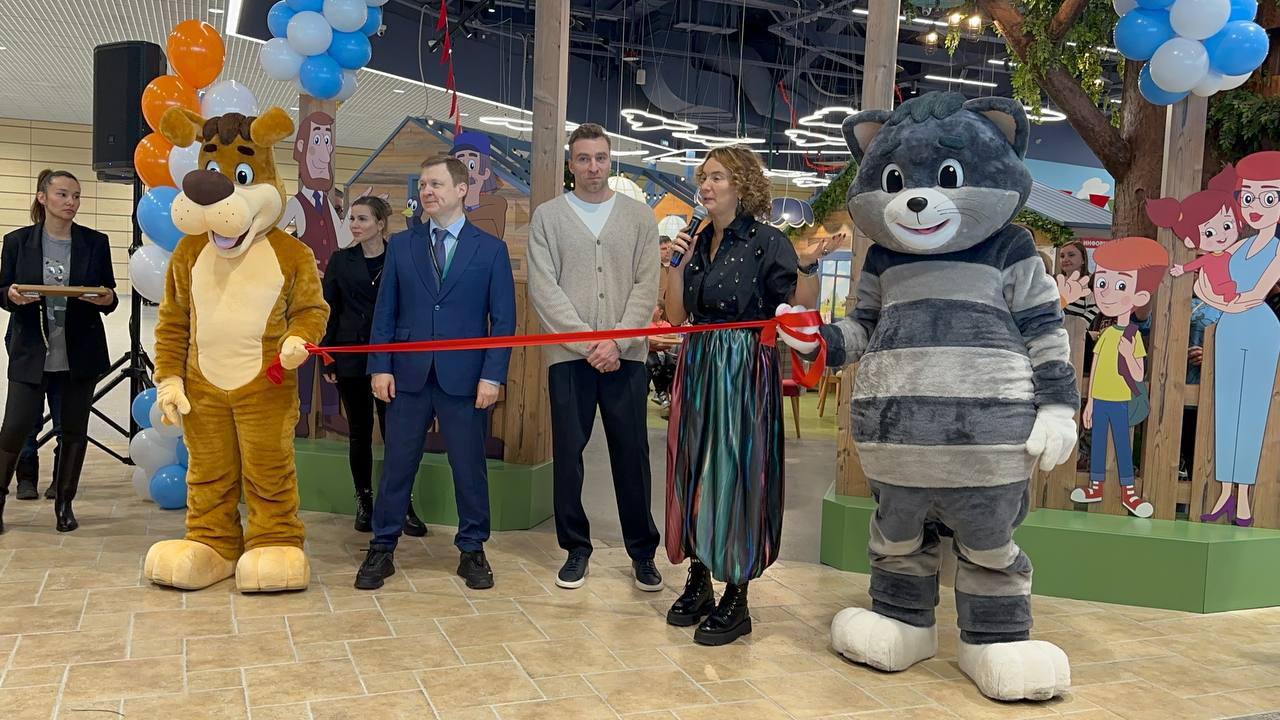 На открытии гостей встречали аниматоры Матроскин и Шарик. Красную ленту перерезали генеральный директор аэропорта Андрей Иванов и председатель Совета директоров «Союзмультфильма» Юлиана Слащева.