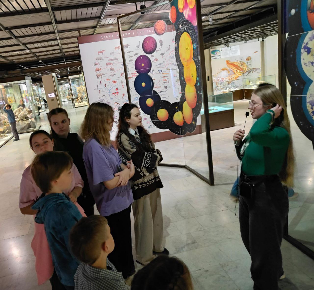 Интересные каникулыРебята 6"Б" класса совершили путешествие в «Государственный Дарвиновский музей". Ребята вернулись на 3,5 миллиарда лет назад, прошли по лабиринту эволюции, и, отвечая на вопросы экскурсовода, проследили за возникновением и развитием различных видов на Земле. Свето-видео-музыкальная экспозиции "Живая планета" покорила ребят. Грандиозная инсталляция, сочетающая в себе зрелищный видеофильм, объёмный звук, слаженную работу «интеллектуальных» световых приборов и аппаратов различных видеоэффектов и, конечно, музейные экспонаты с вековой историей. Благодаря уникальным кадрам живой природы ребята оказались в бескрайних просторах саванны, окунулись с головой в морскую пучину, попали под тропический ливень, взобрались на суровые горные пики и увидели полярное сияние на обоих полюсах Земли. Получилось прекрасное знакомство с чудесными растениями и животными.