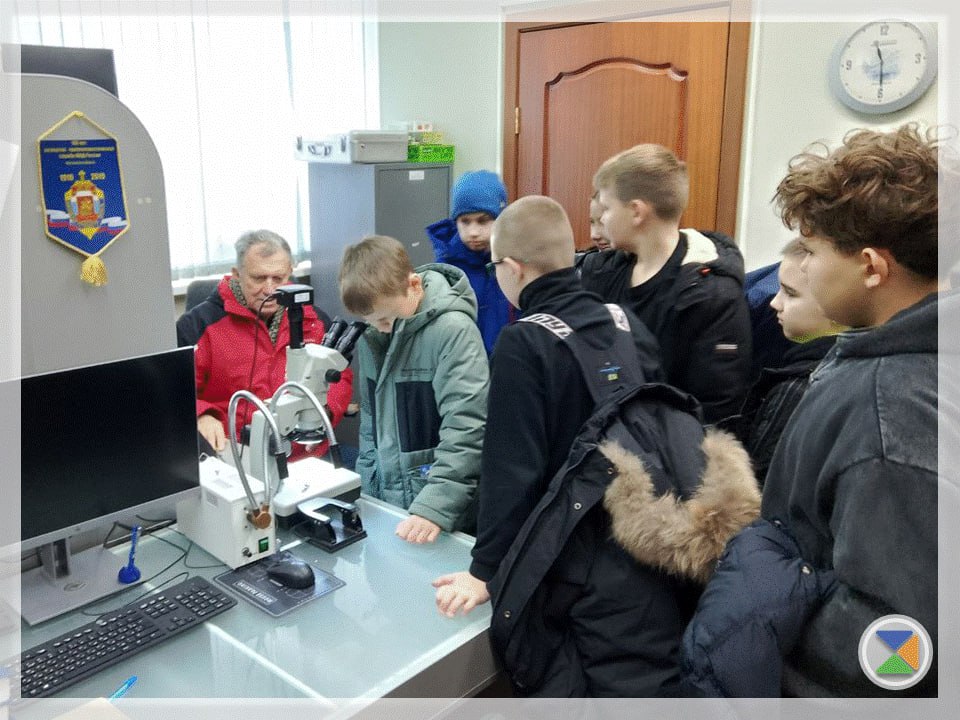Школьники побывали в экспертно-криминалистической службе, где им продемонстрировали различные виды криминалистических экспертиз. Ребятам показали процесс снятия отпечатков пальцев с разных поверхностей, изъятие следов подошв обуви и протекторов шин, а также объяснили, как у задержанных правонарушителей берут отпечатки пальцев и заносят их в дактилоскопическую базу.
