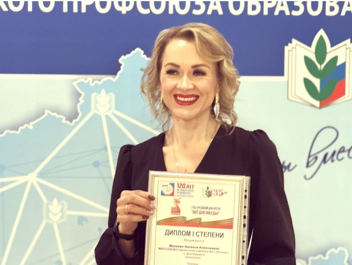 Воспитатель школы № 10 Наталья Макеева завоевала победу в конкурсе-фестивале «Год трудовой доблести – всё для Победы». Его организовал Московский областной профсоюз работников народного образования и науки для педагогических работников региона.