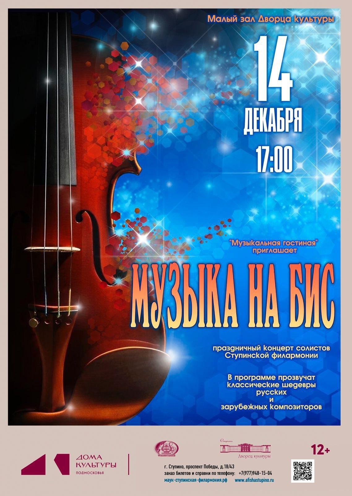 В воскресенье, 14 декабря, на сцене Малого зала Дворца культуры состоится концерт «Музыка на бис». Концертный отдел «Музыкальная гостиная» Ступинской филармонии представит программу из известных произведений классики и современных композиций.