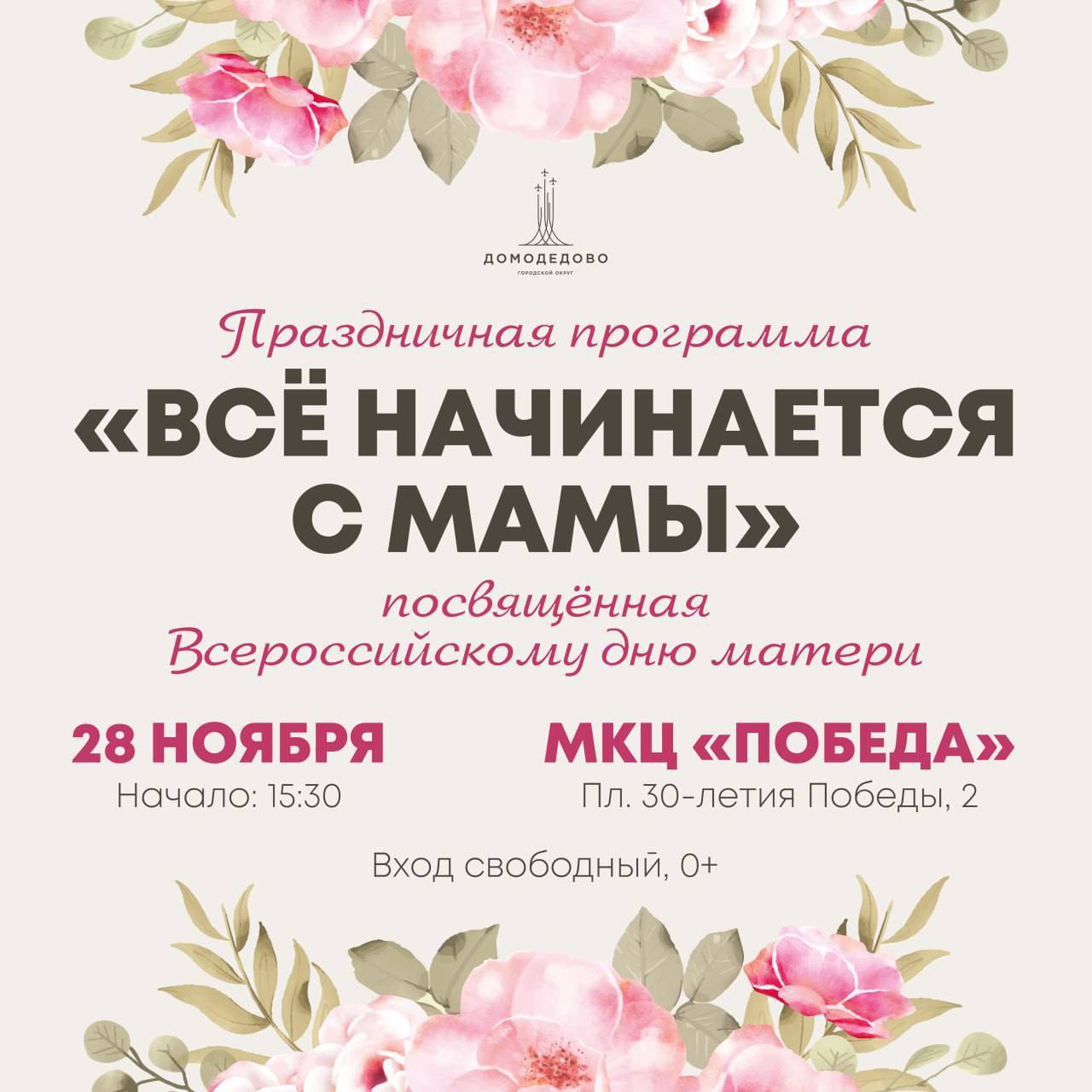 Приглашаем домодедовские семьи на праздничную программу ко Дню матери
