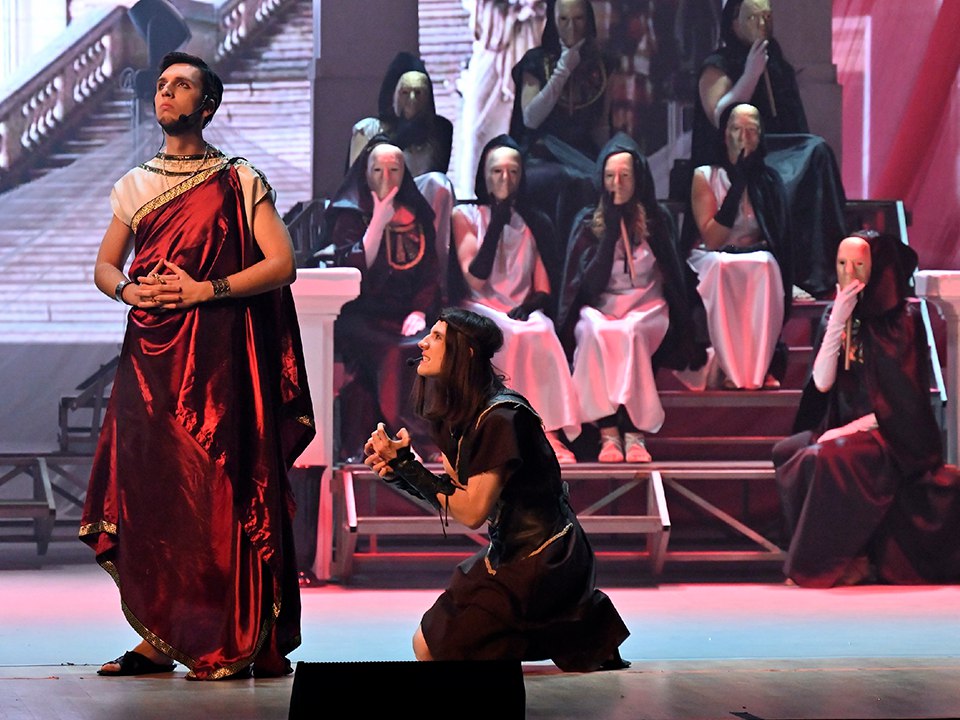 Спектакль, получивший признание на фестивале «Мастер Мюзикла — 2025», демонстрирует, как классическая пьеса Григория Горина обретает новые смыслы в современном прочтении. Постановка соединяет античный сюжет с актуальными вопросами о природе славы и общественного внимания.