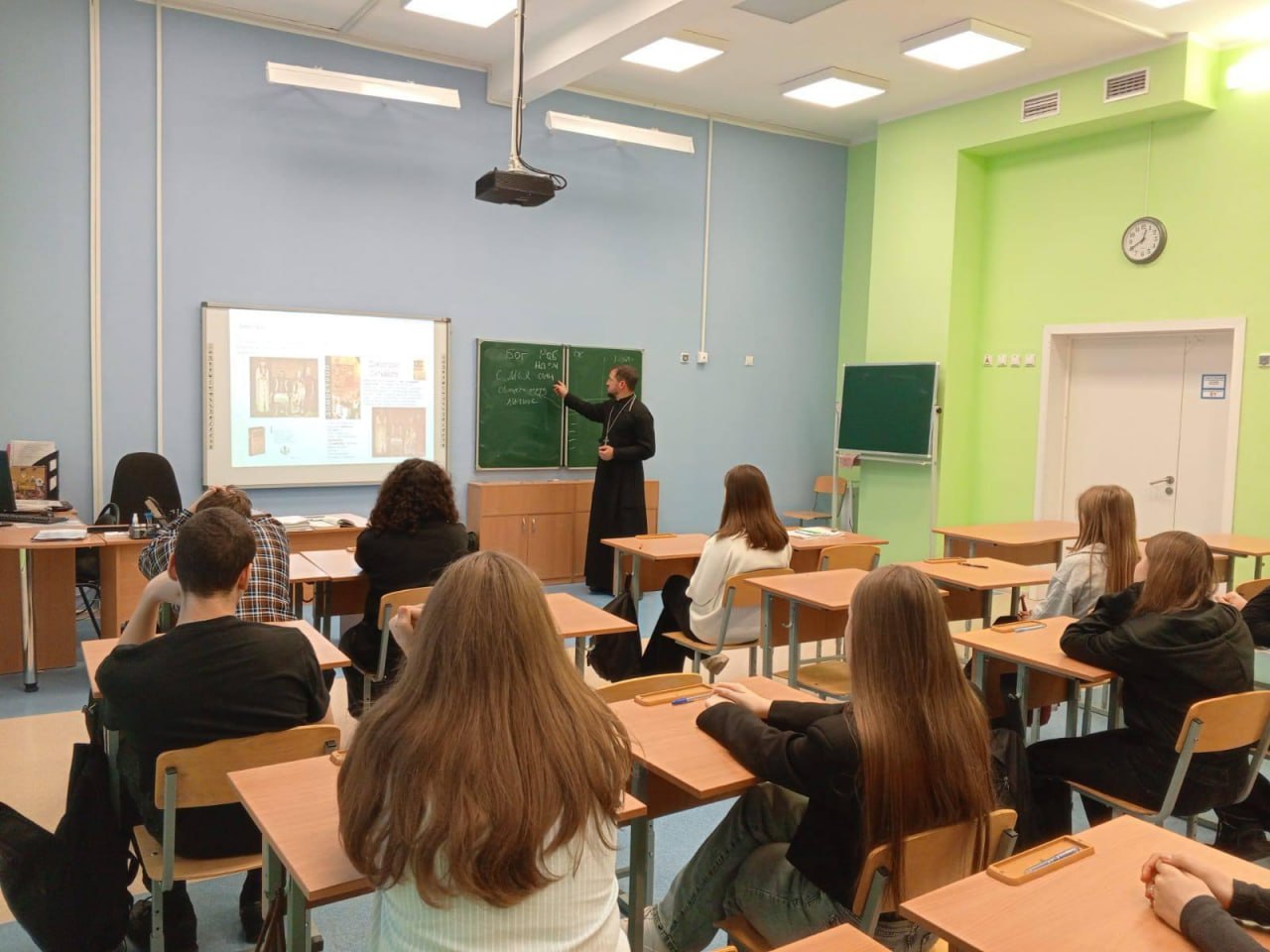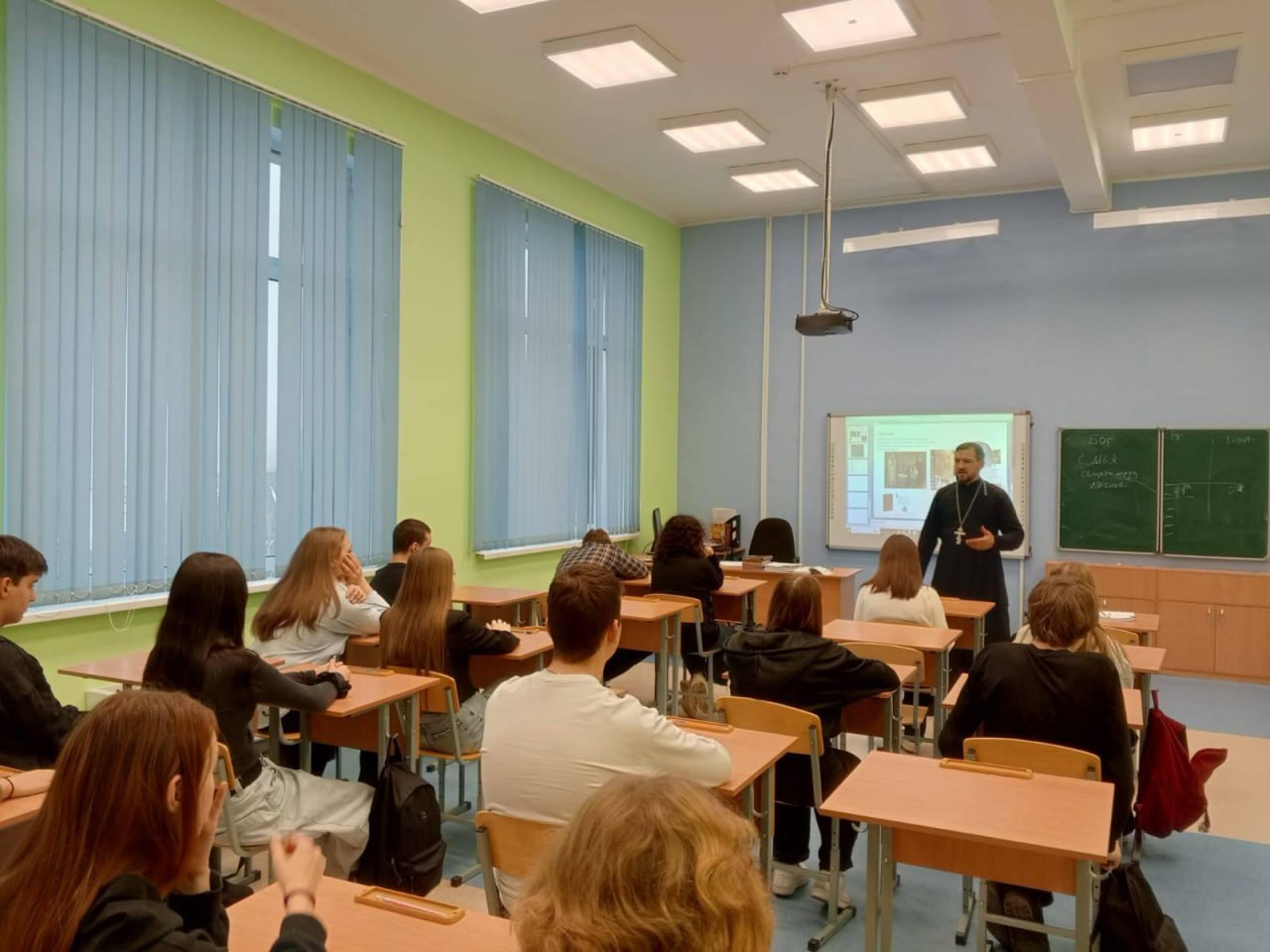 В ходе встреч отец Евгений рассказал старшеклассникам о значении нравственных ориентиров в жизни современного человека, о важности сохранения духовных традиций и их роли в формировании личности.