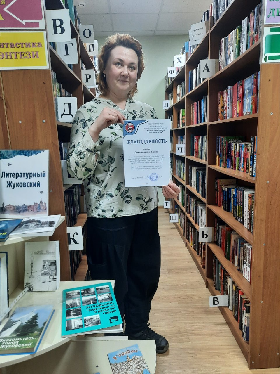 По окончании встречи Юлия Александровна Малышева была удостоена благодарности от директора МУК «Жуковская централизованная библиотечная система» Сергея Зайцева за многолетнюю плодотворную просветительскую деятельность.