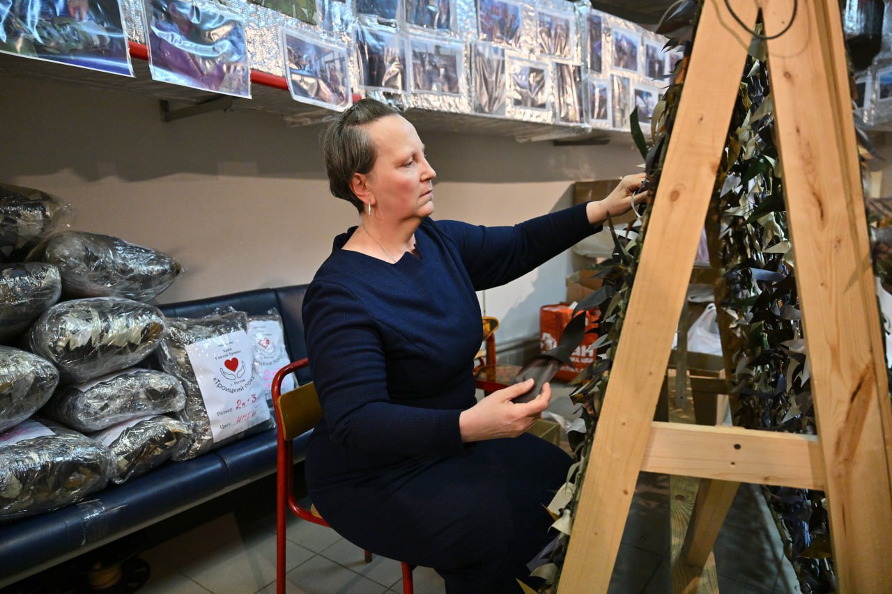 Много лет она – прихожанка Троицкого храма, где на каждой литургии звучит молитва о воинах. При храме есть мастерская, где помощь участникам спецоперации идёт полным ходом – делают маскировочные сети, шьют и вяжут.