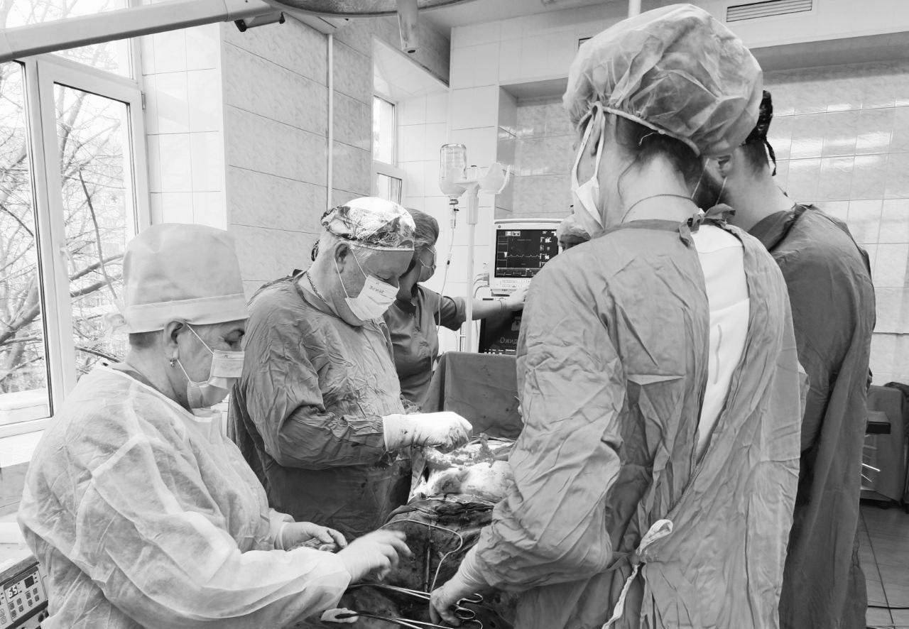 Из-за рубцов и деформации образовалось отверстие около 15 см и выпячивание более 25 см. Это делало случай крайне сложным, так как зачастую такие объемные образования вправить в брюшную полость не представляется возможным, без негативных последствий для организма.