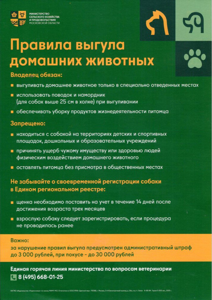 - использовать поводок и намордник (для собак выше 25 см в холке) при выгуливании;