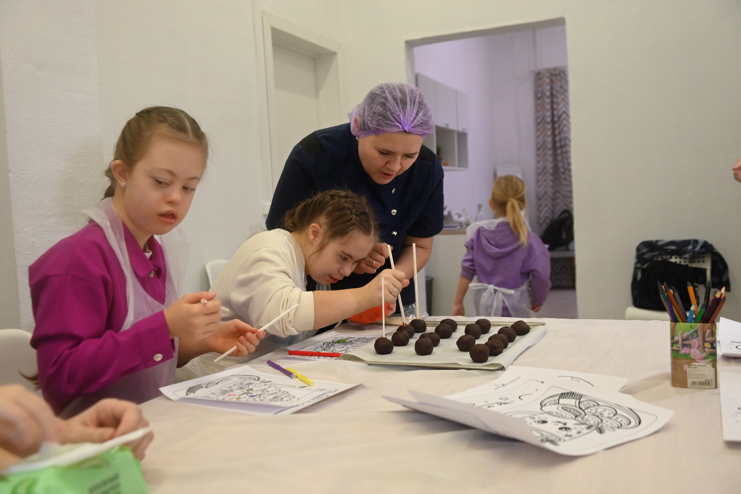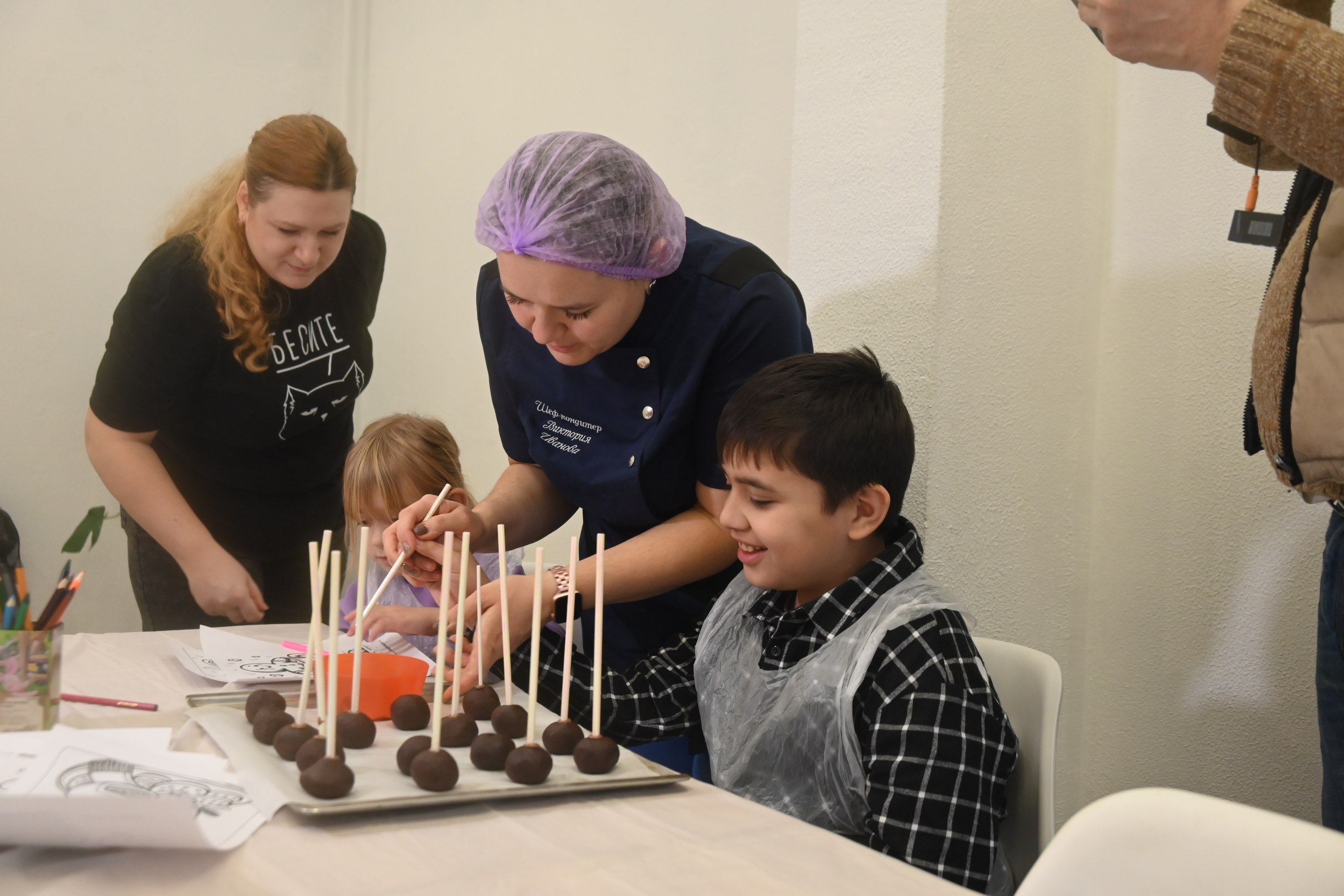 В мероприятии приняли участие 10 детей с ограниченными возможностями здоровья. Шеф-кондитер, владелица кондитерской студии в Видном Виктория Иванова провела для детей мастер-класс по приготовлению кейк-попсов.