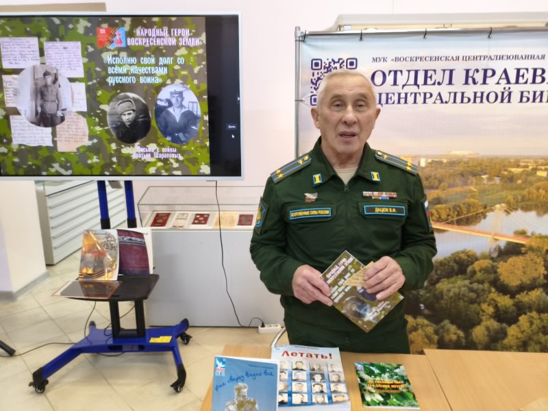 В отделе краеведения Центральной библиотеки им. Инны Гофф для студентов Российской академии туризма (РМАТ) и учащихся лицея им. Стрельцова П.В. прошёл патриотический час «Народные герои Воскресенской земли. Мероприятие было организовано в рамках проекта «Успех V Единстве поколений» партии «Единая Россия».