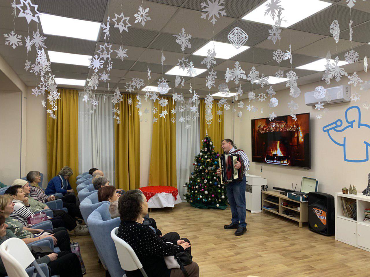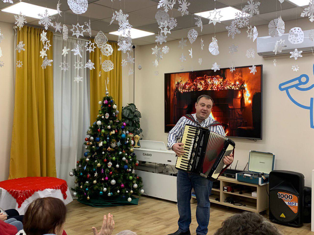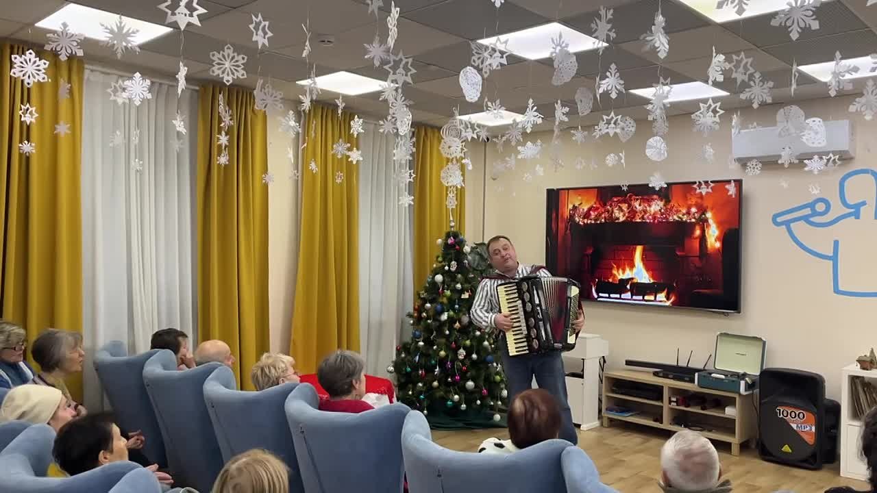 В течение часа долголеты наслаждались чарующими звуками аккордеона, который мастерски исполнял артист. Его проникновенная игра оживила любимые мелодии разных эпох, заставив зал погрузиться в атмосферу радости и светлой ностальгии.