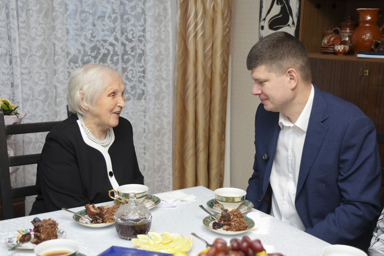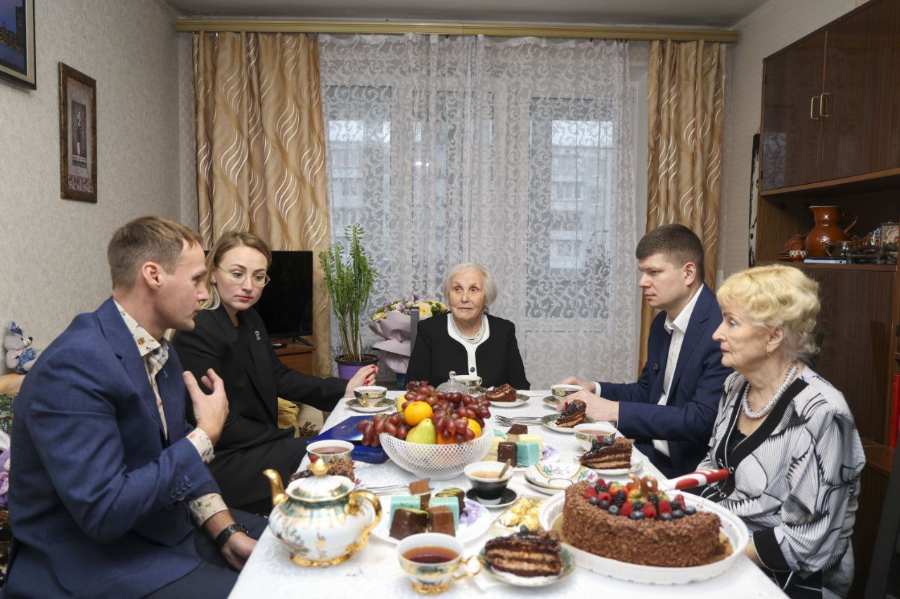Екатерина Тихоновна Гольцова отметила 95-летний юбилей. Передал поздравления от нашего Президента и Губернатора, вручил цветы и подарки. Видеть её искреннюю улыбку — это большая награда.