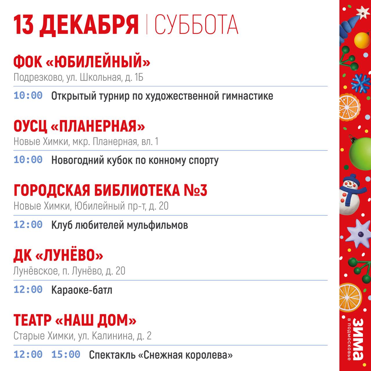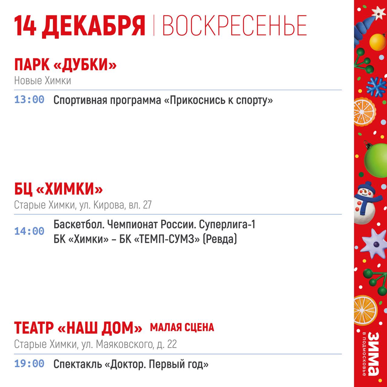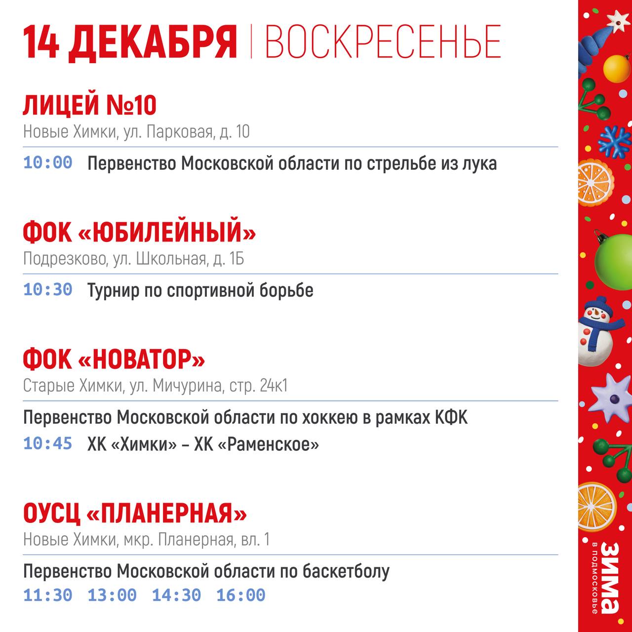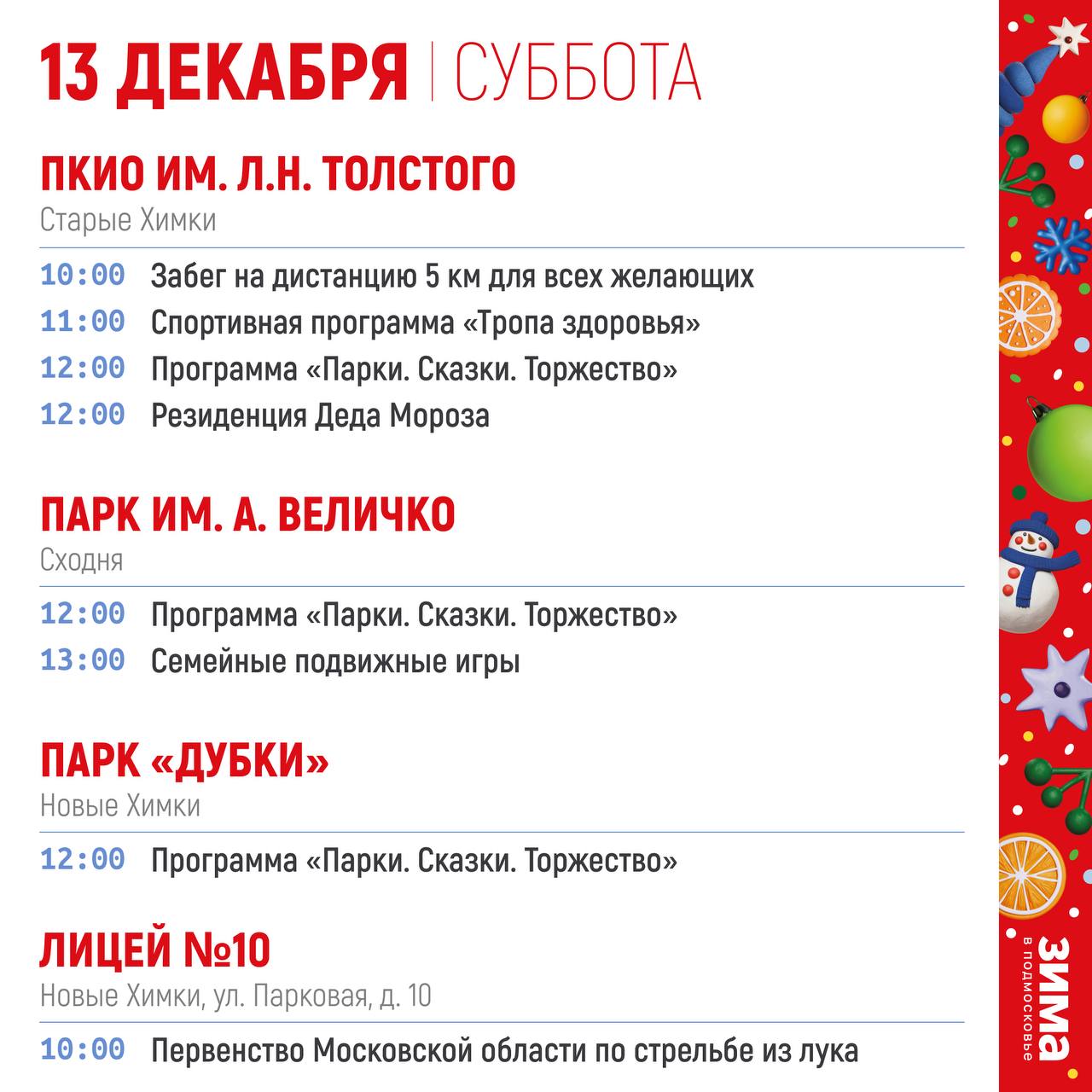 В эти выходные в Химках пройдут культурные и спортивные активности.