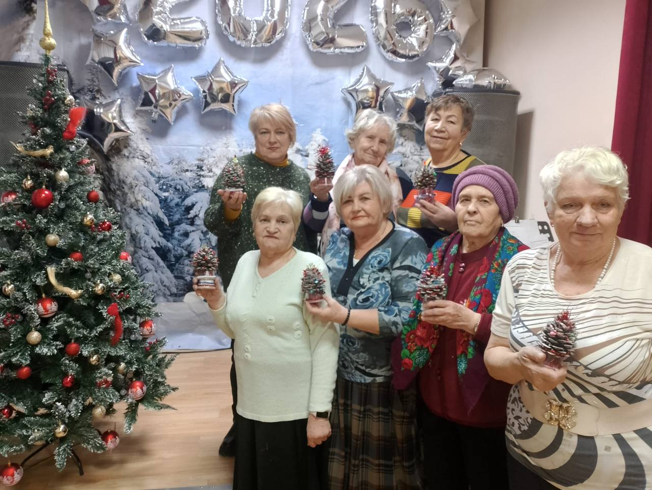 В дружеской атмосфере проходит каждый мастер-класс у наших участников клуба по интересам "Хорошие встречи". За годы существования клуба, мы стали как семья. Довольные, счастливые и такие нарядные приходят к нам в клуб женщины почтенного возраста. И у всех- золотые ручки! Елочки, которые были сделаны на мастер-классе, получились с индивидуальным неповторимым дизайном и душой.