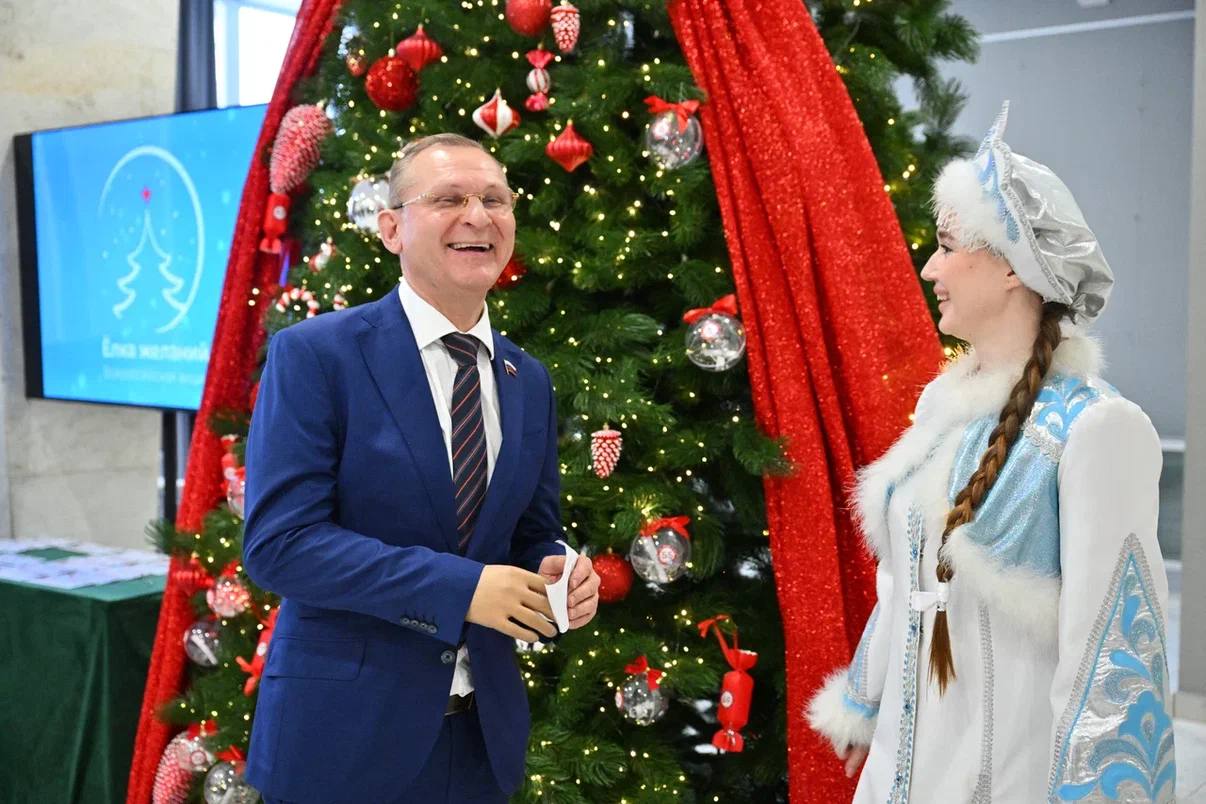 В Балашихе принял участие в доброй акции «Ёлка желаний». На новогоднем дереве было много шаров с самыми разными мечтами мальчишек и девчонок.