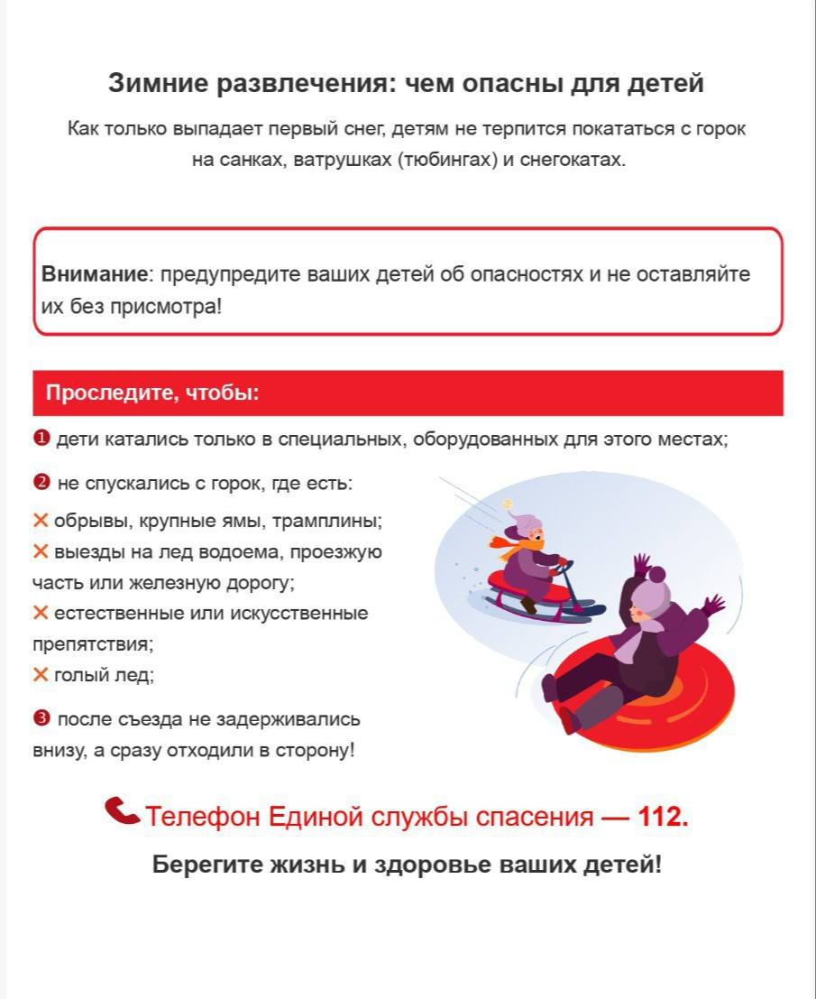 С первым снегом детям не терпится покататься с горок на санках и снегокатах.