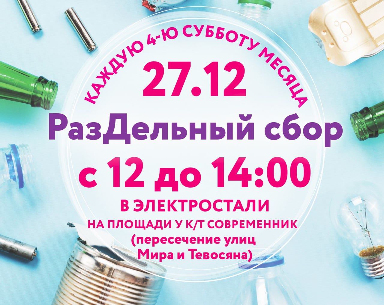 27 декабря в Электростали состоится заключительная в этом году акция по раздельному сбору отходов.