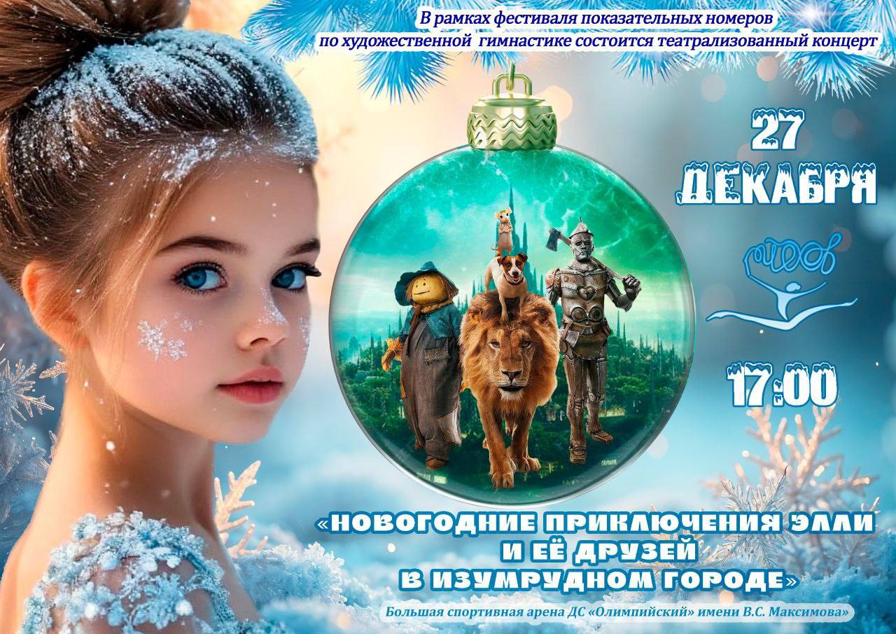 27 декабря во Дворце спорта «Олимпийский» имени В.С. Максимова» в рамках фестиваля показательных номеров по художественной гимнастике состоится театрализованный концерт «Новогодние приключения Элли и её друзей в изумрудном городе».