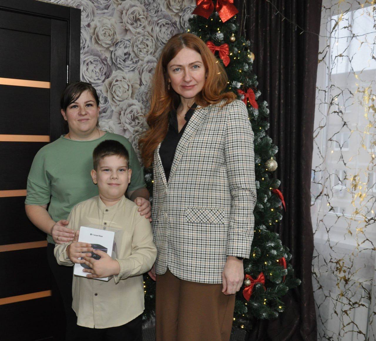 Вручая подарок, заместитель главы округа поздравила мальчика и его семью с наступающим Новым годом, пожелала всем здоровья, счастья и добра.