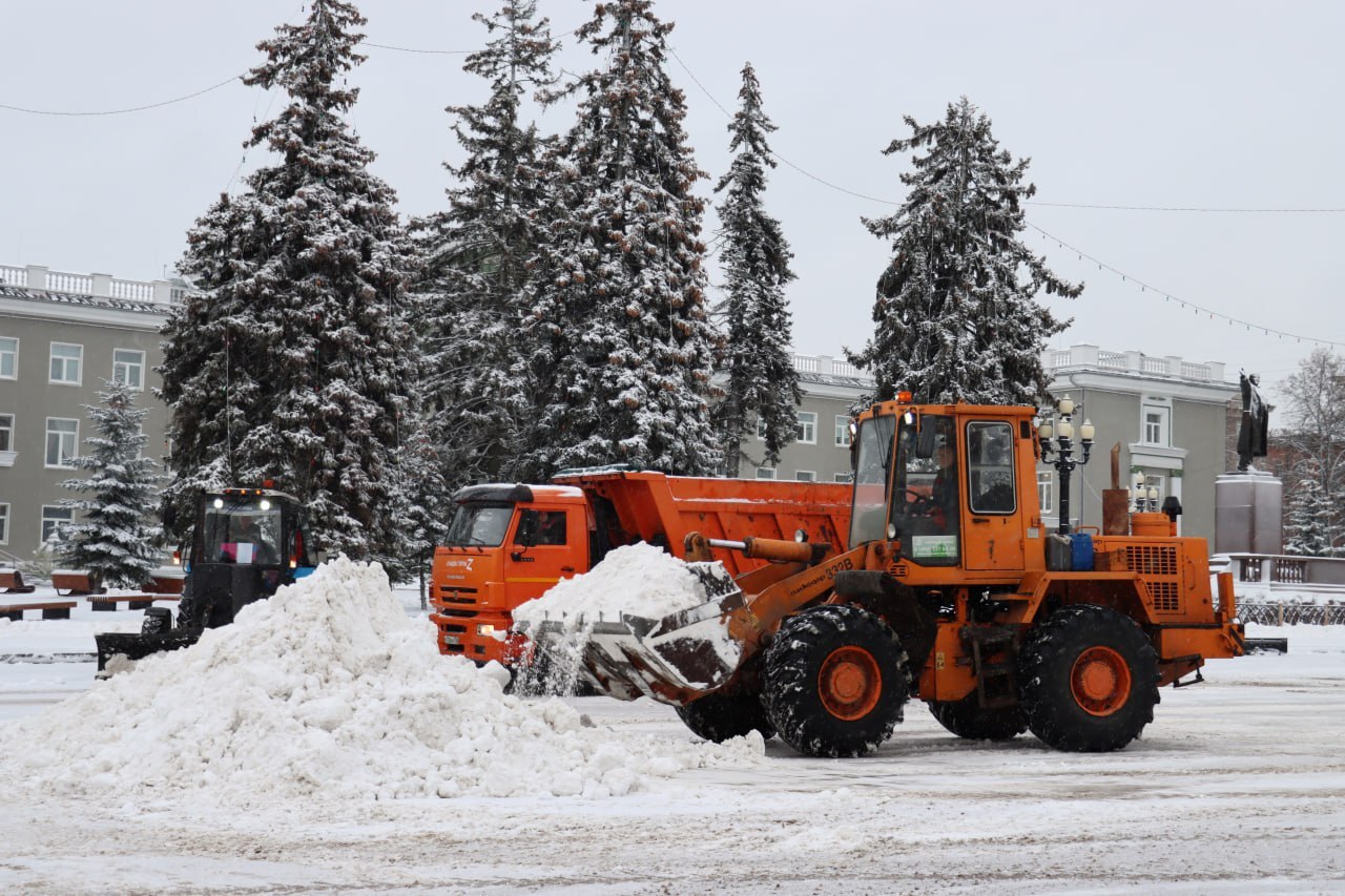 С самого утра в округе ведется очистка территории. Чтобы оперативно справиться с таким объемом снега, специалисты организовали работу в две смены.